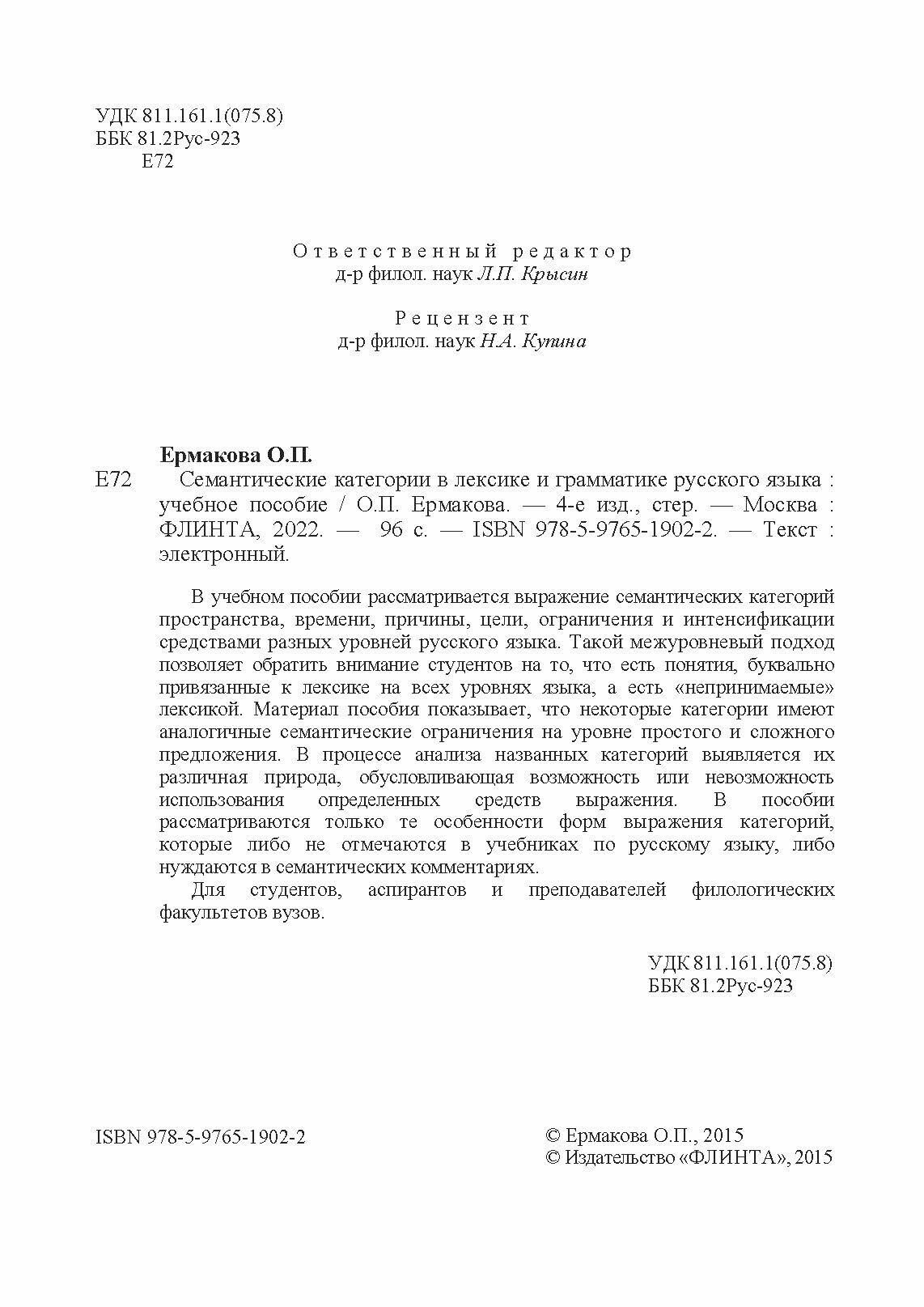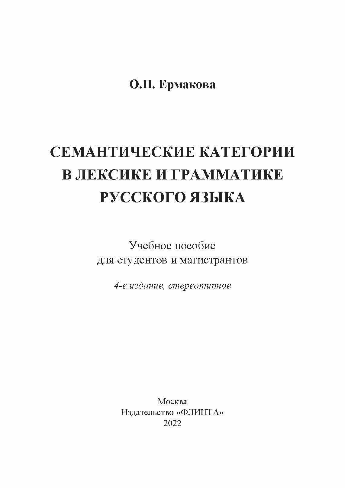 Семантические категории в лексике и грамматике русского языка. Учебное пособие (Ольга Павловна Ермакова); Флинта, 2015