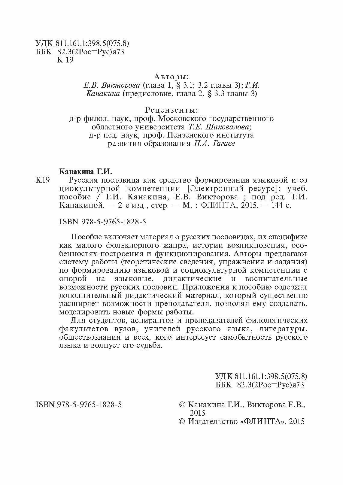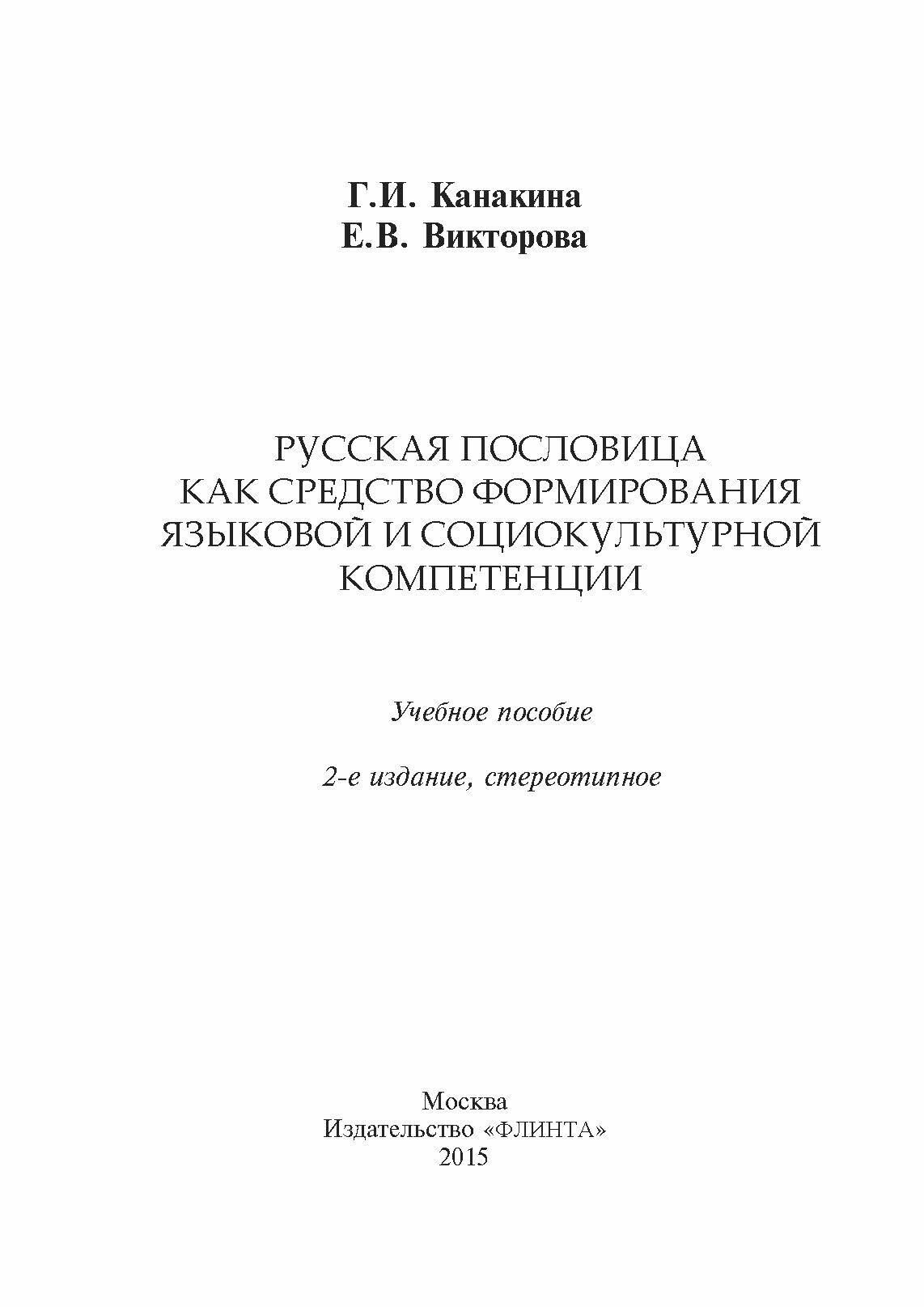 Русская пословица как средство формирование языковой и социокультурной компетенции. Учебное пособие (Канакина Галина Ивановна, Викторова Елена Викторовна); Флинта, 2020