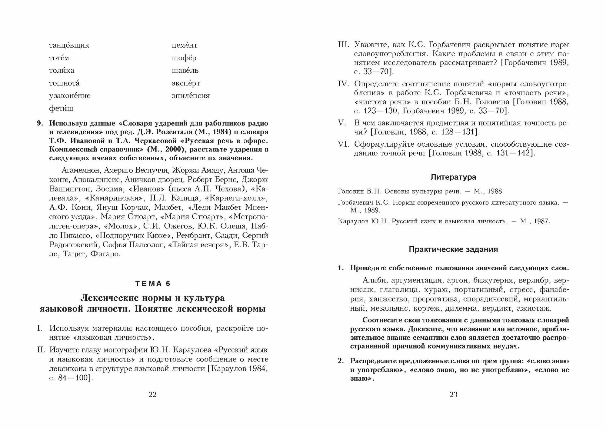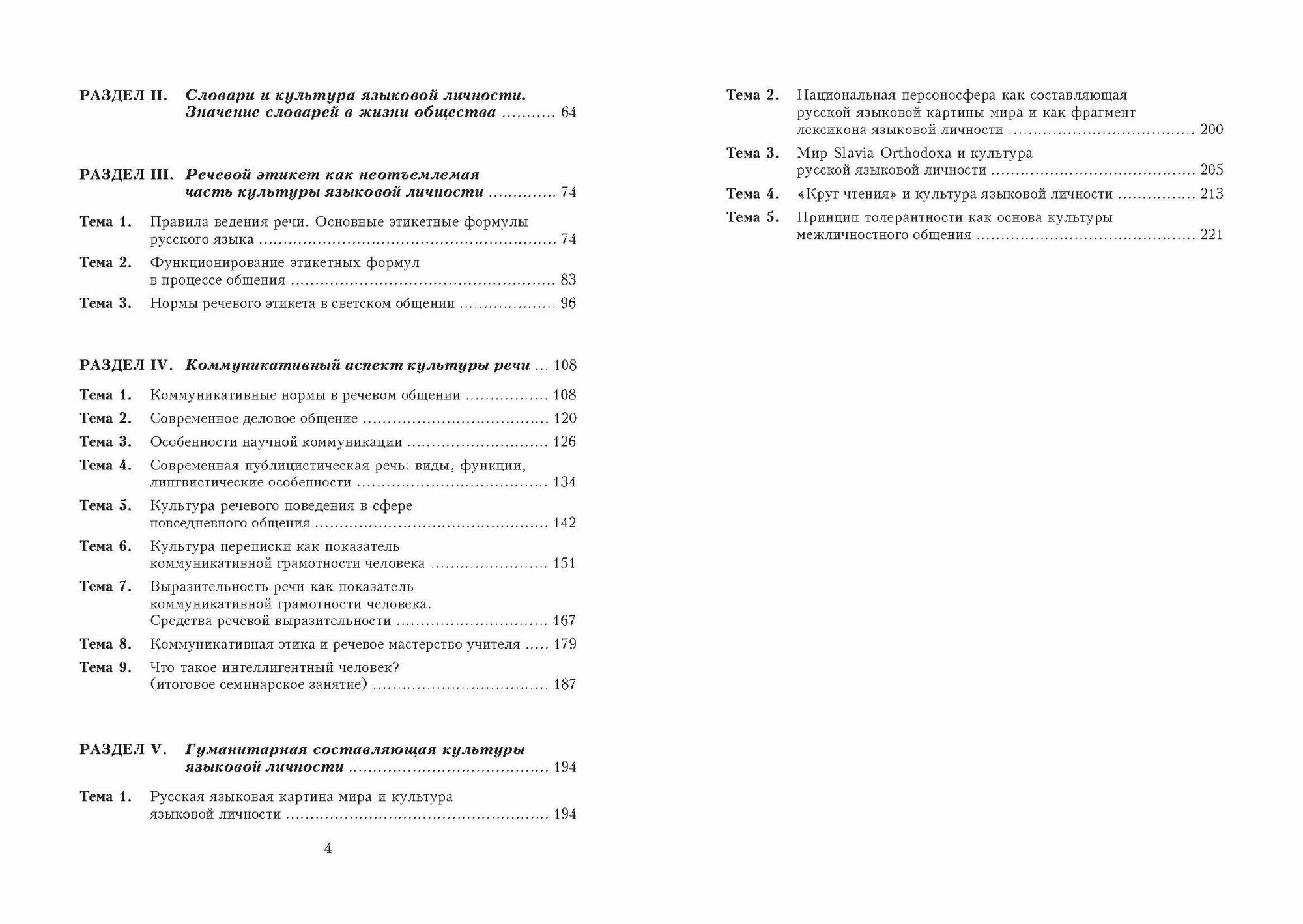 Практикум включает разделы: «Нормы современного русского языка и культура языковой личности», «Словари и культура языковой личности», «Речевой этикет как неотъемлемая часть культуры языковой личности», «Коммуникативный аспект культуры речи», «Гуманитарная составляющая культуры языковой личности», что отвечает современному комплексному пониманию культуры речи как единства нормативного, коммуникативного и этического аспектов, а также позволяет подчеркнуть значимость гуманитарного знания в формировании общей культуры человека. Предлагаются практические и семинарские занятия по основным темам, а также материалы для различных видов аудиторной и самостоятельной работы. Приедены примерные схемы риторического анализа текста, правила речеведения для говорящего и слушающего, перечень средств речевой выразительности, типология коммуникативных неудач. Для студентов высших учебных заведений, обучающихся по направлению 031000.62 – «Филология» и специальности 031001.65 – «Филология» в рамках дисциплины «Русский язык и культура речи» блока ОПД, а также для всех, кто стремится повысить свою речевую культуру.