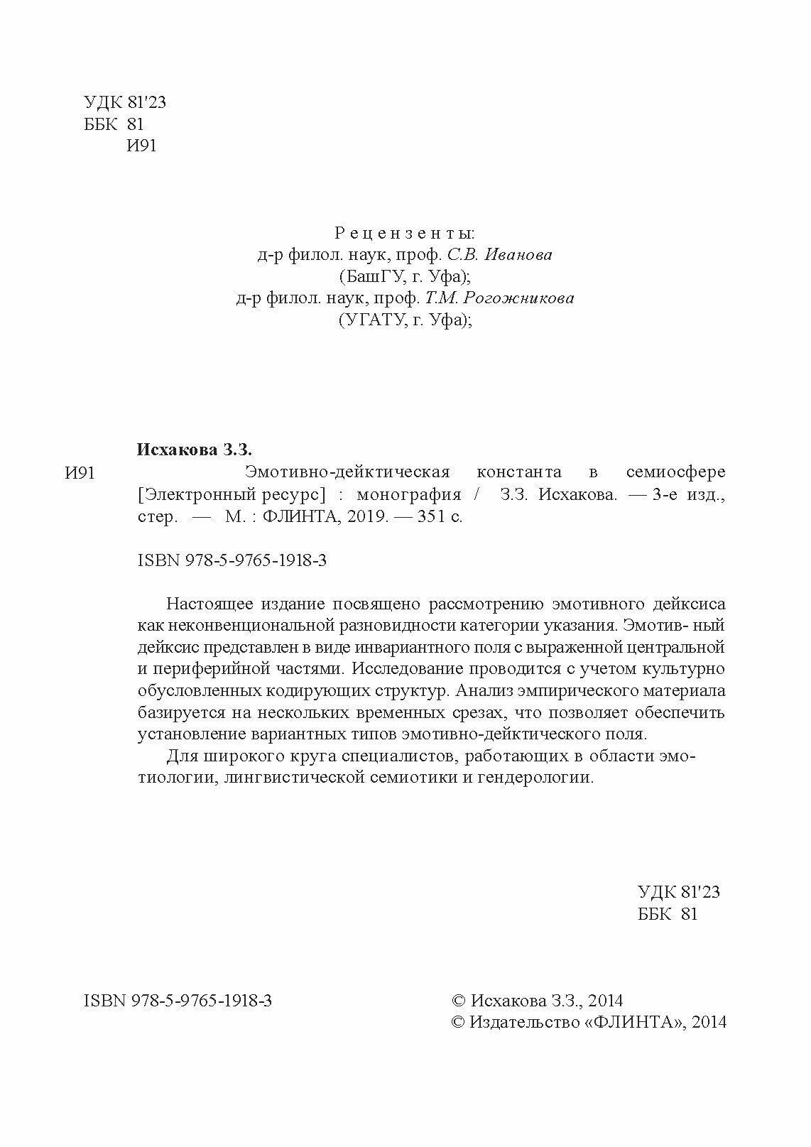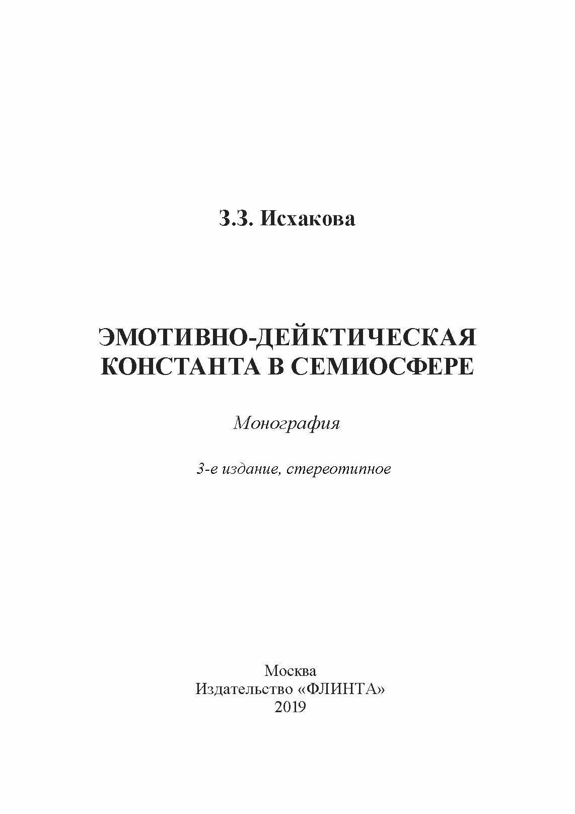 Эмотивно-дейктическая константа в семиосфере. Монография (Исхакова Земфира Зульфугаровна); Флинта, 2014