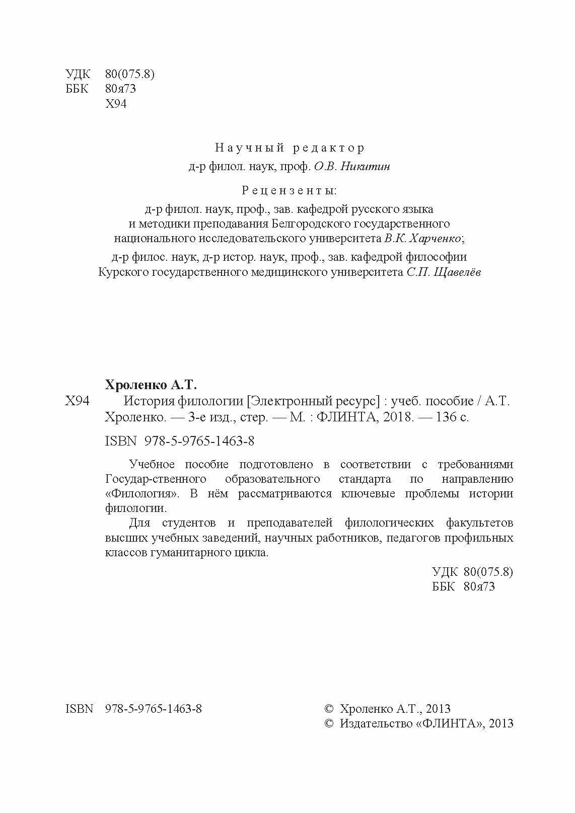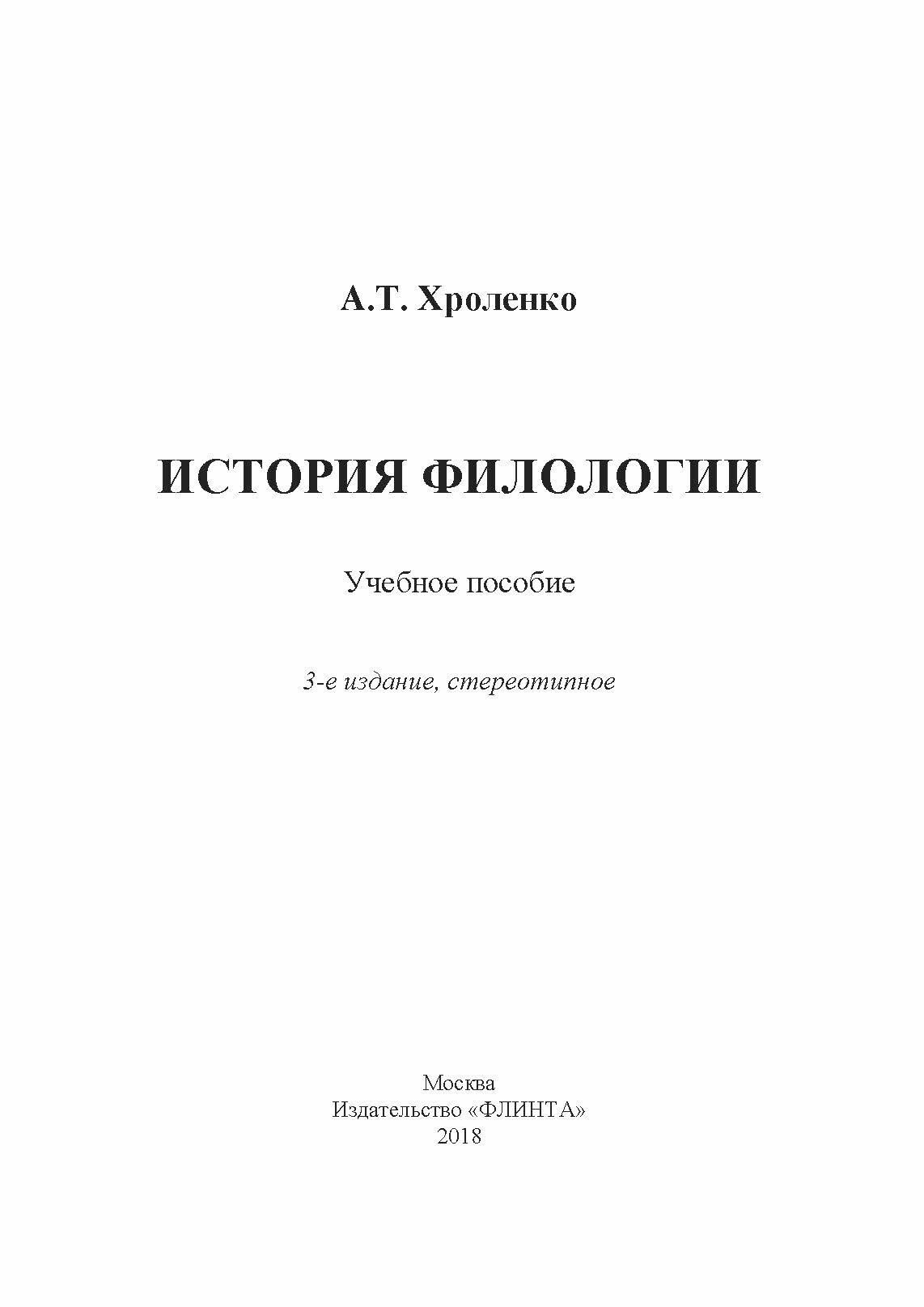 История филологии. Учебное пособие (Александр Тимофеевич Хроленко); Флинта, 2018
