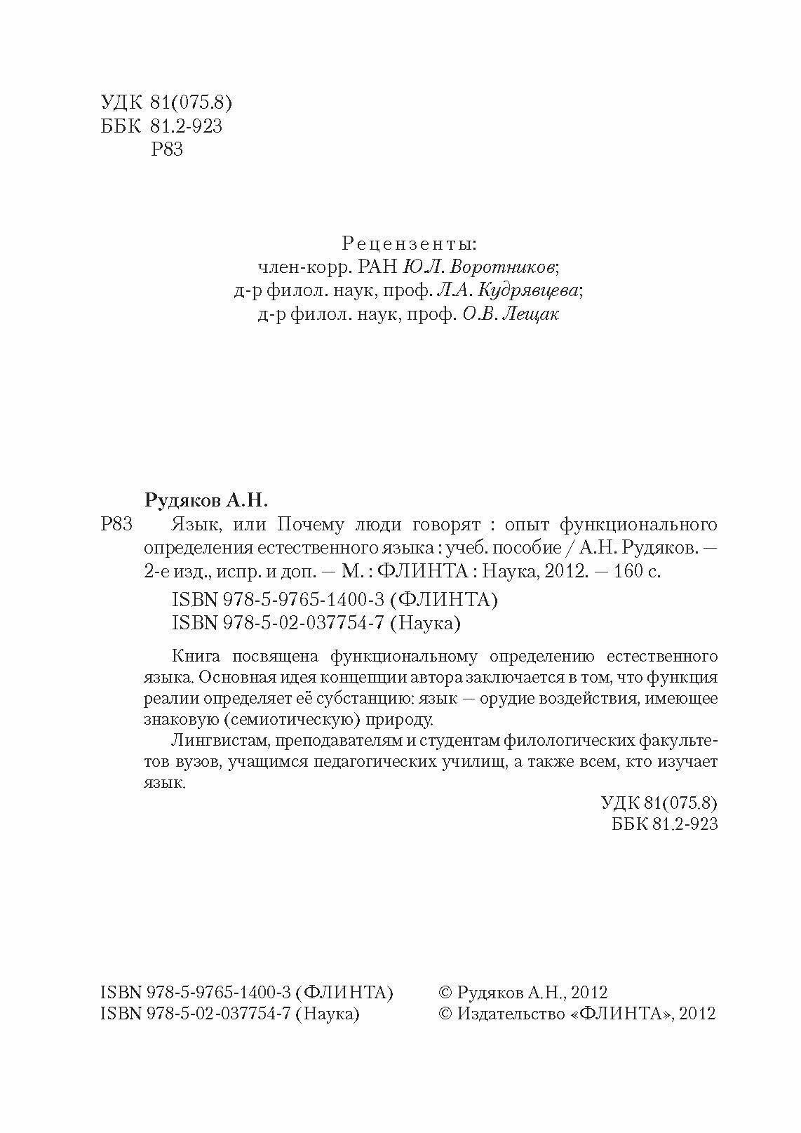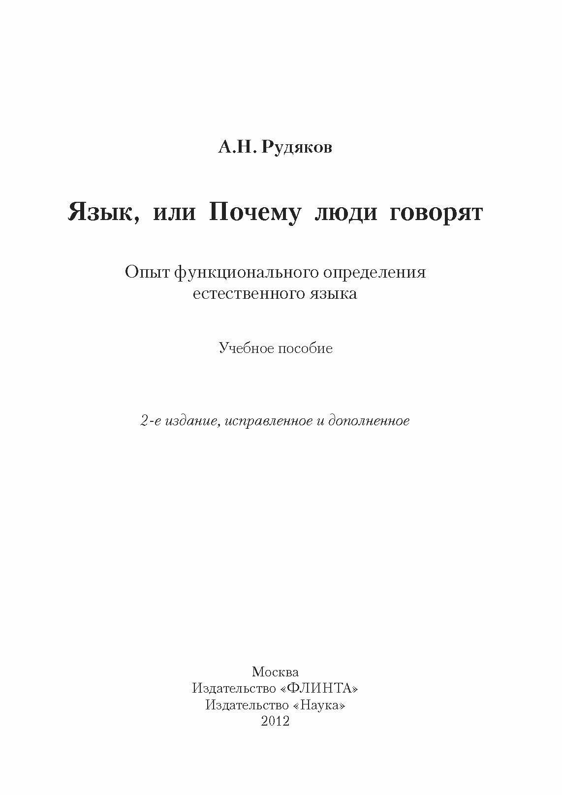 Язык или Почему люди говорят: опыт функционального определения естественного языка (Рудяков Александр Николаевич); Флинта, 2012