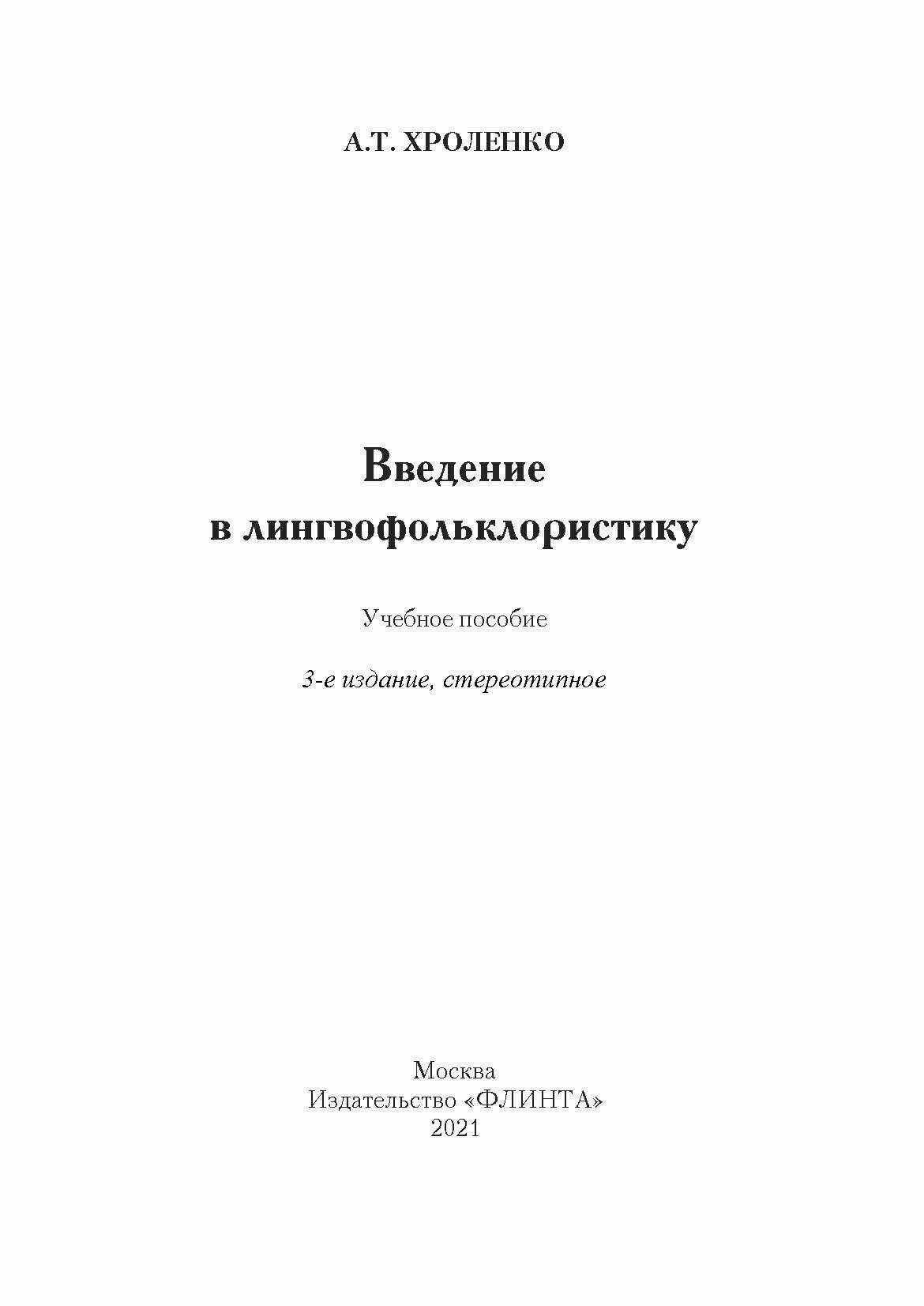 Введение в лингвофольклористику. Учебное пособие (Александр Тимофеевич Хроленко); Флинта, 2010