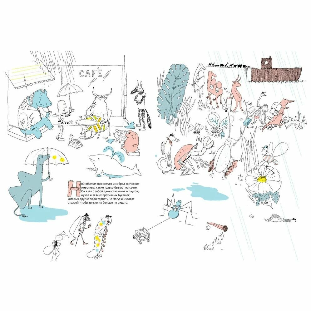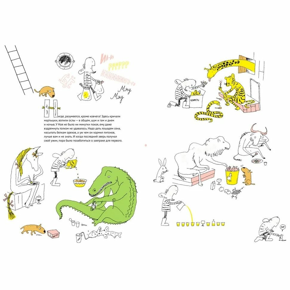 Старая как мир притча обросла самым необычным оформлением и забавной трактовкой - целый карнавал зверей, и у каждого нетривиальное занятие, что уж говорить о самом Ное в панковском прикиде и в татуировках на руках - эдакий артбук с легким налетом авангарда. Очень довольна покупкой, будем рассматривать и перечитывать бесконечно