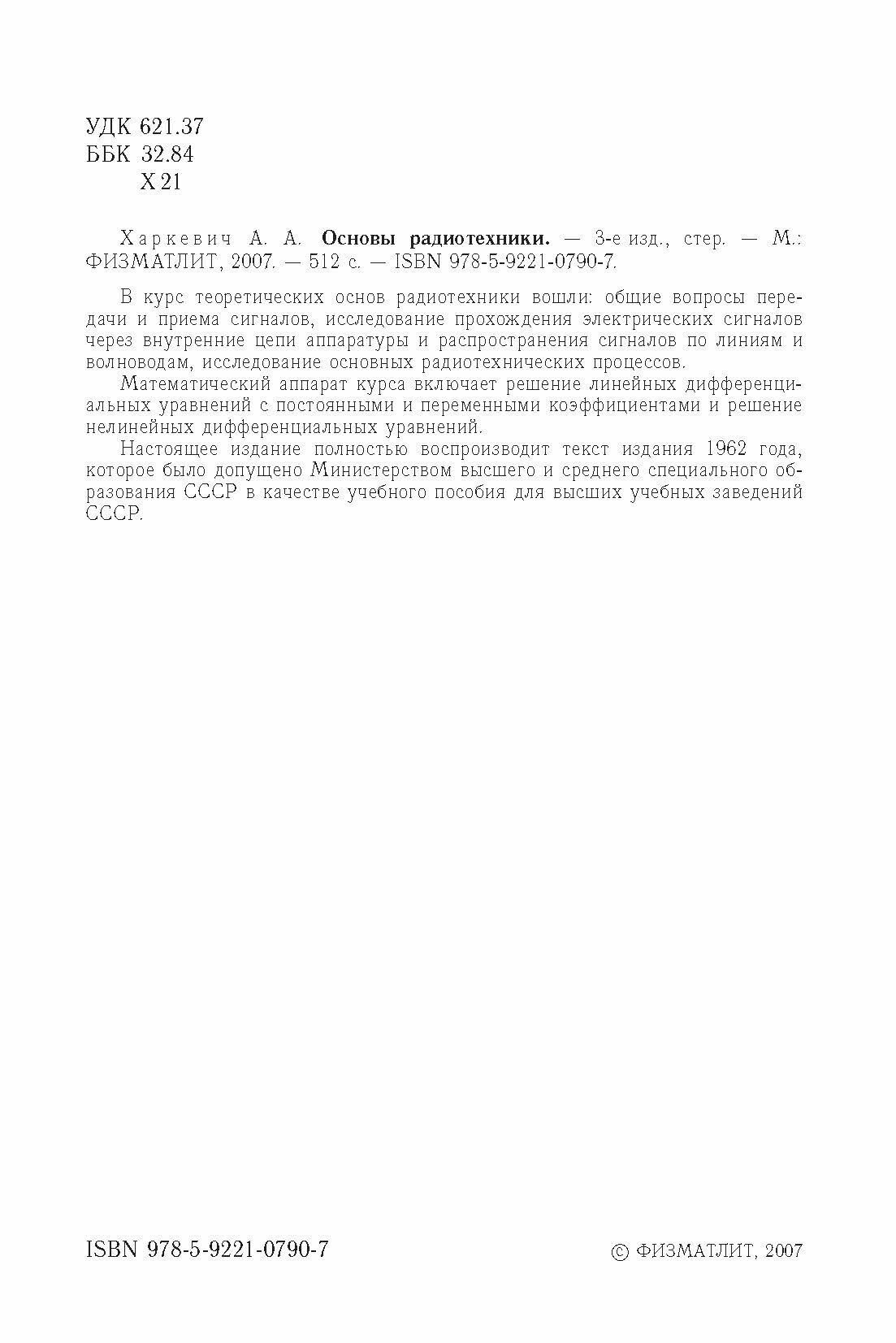 Книга: Основы радиотехники (Харкевич Александр Александрович); Физматлит, 2007