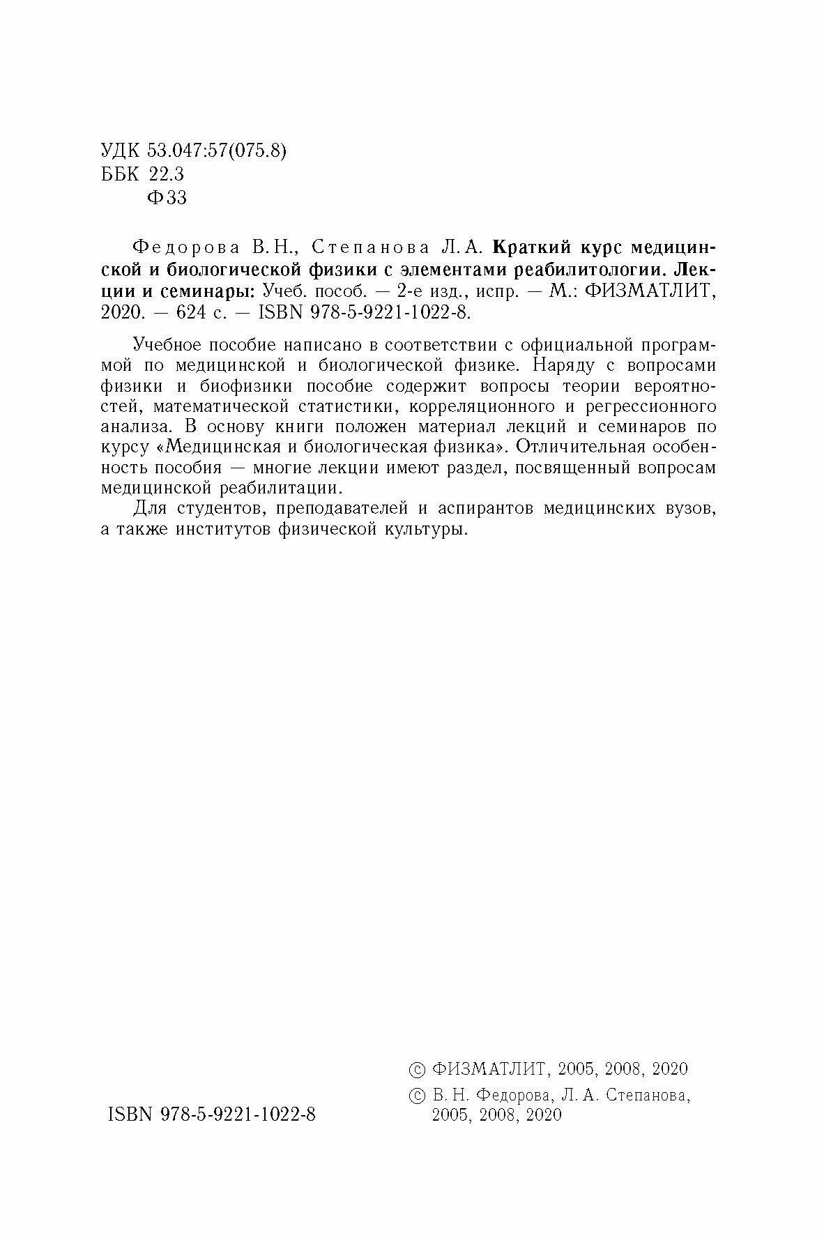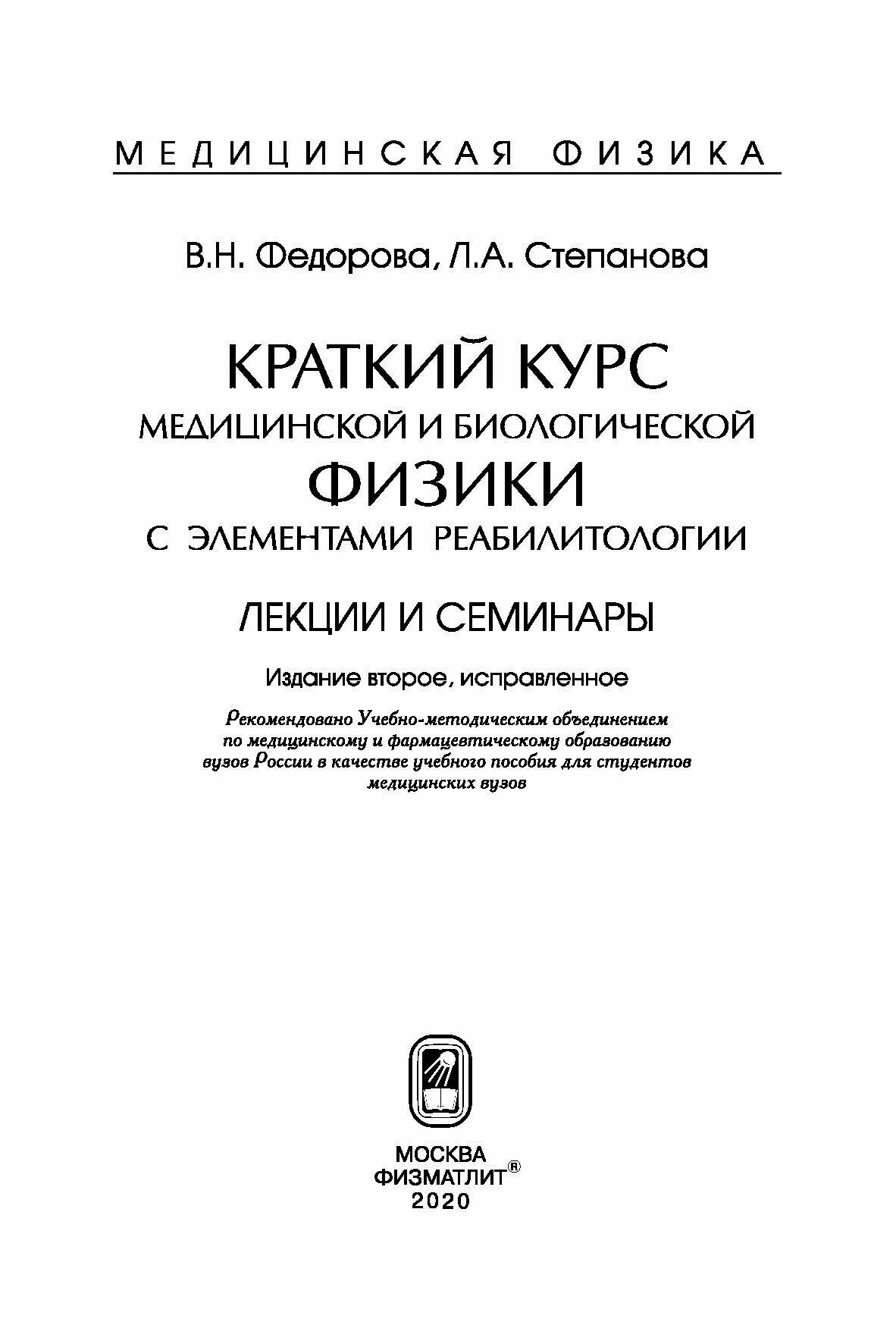 Краткий курс медицинской и биологической физики с элементами реабилитологии. Лекции и семинары (Федорова Валентина Николаевна, Степанова Людмила Анатольевна); Физматлит, 2020
