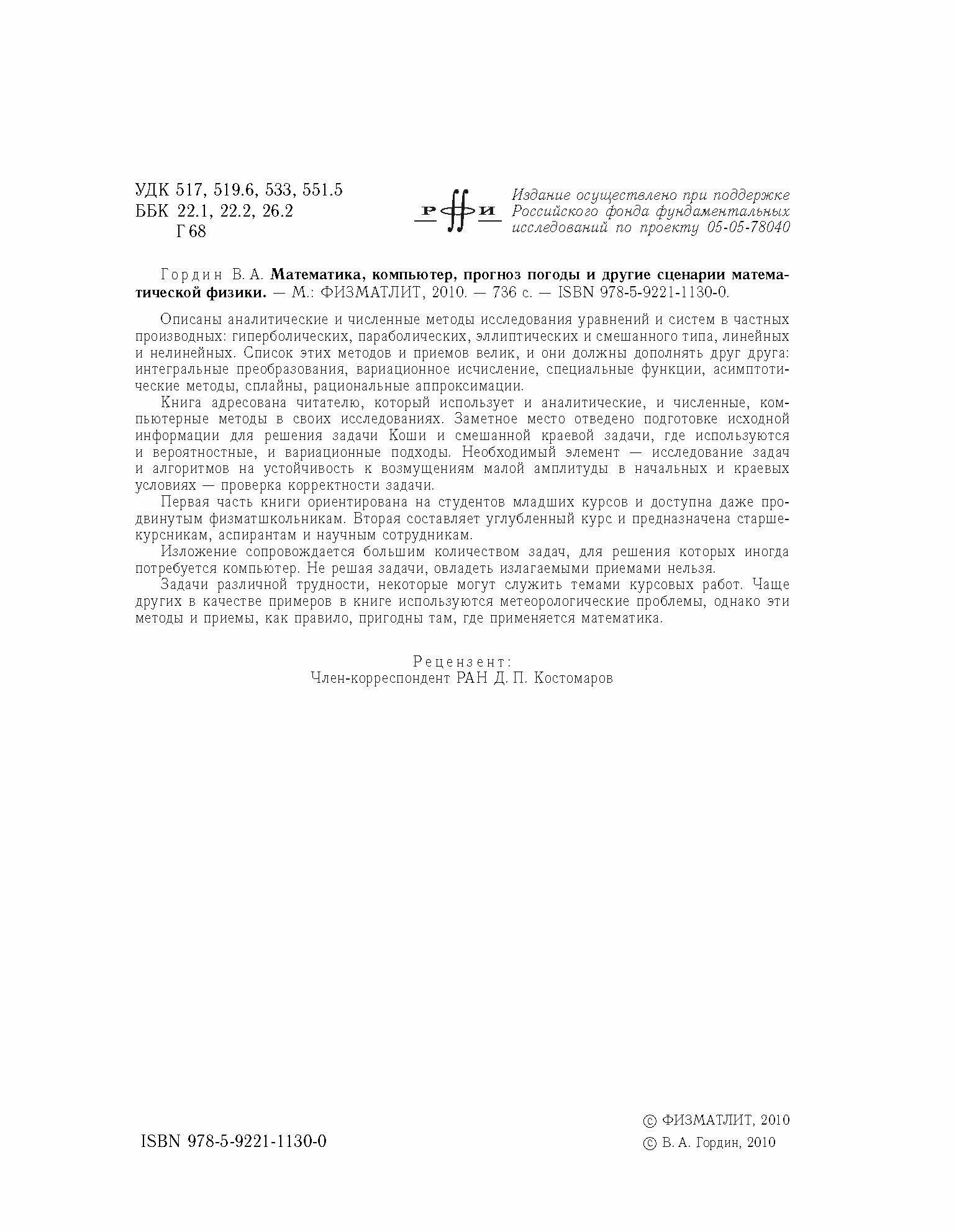 Математика компьютер прогноз погоды и другие сценарии математической физики (В. А. Гордин); Издательская фирма "Физико-математическая литература", 2010