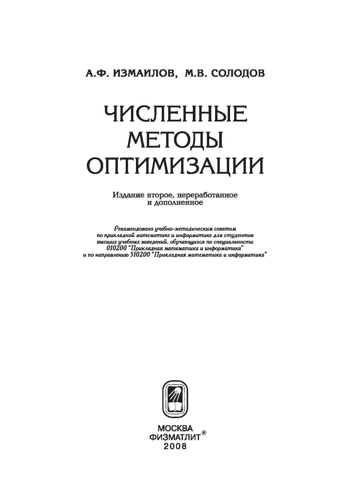 Численные методы оптимизации. Учебное пособие (Измаилов Алексей Феридович, Солодов Михаил Владимирович); Физматлит, 2008