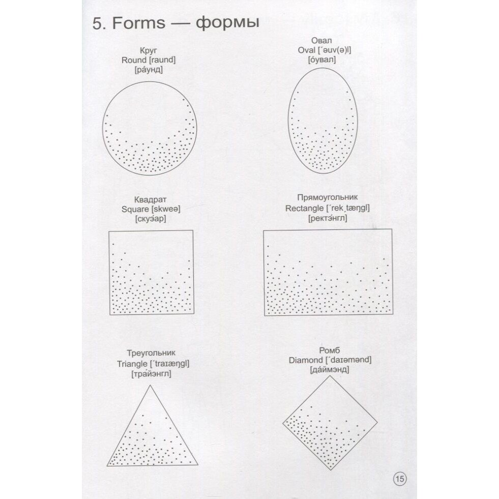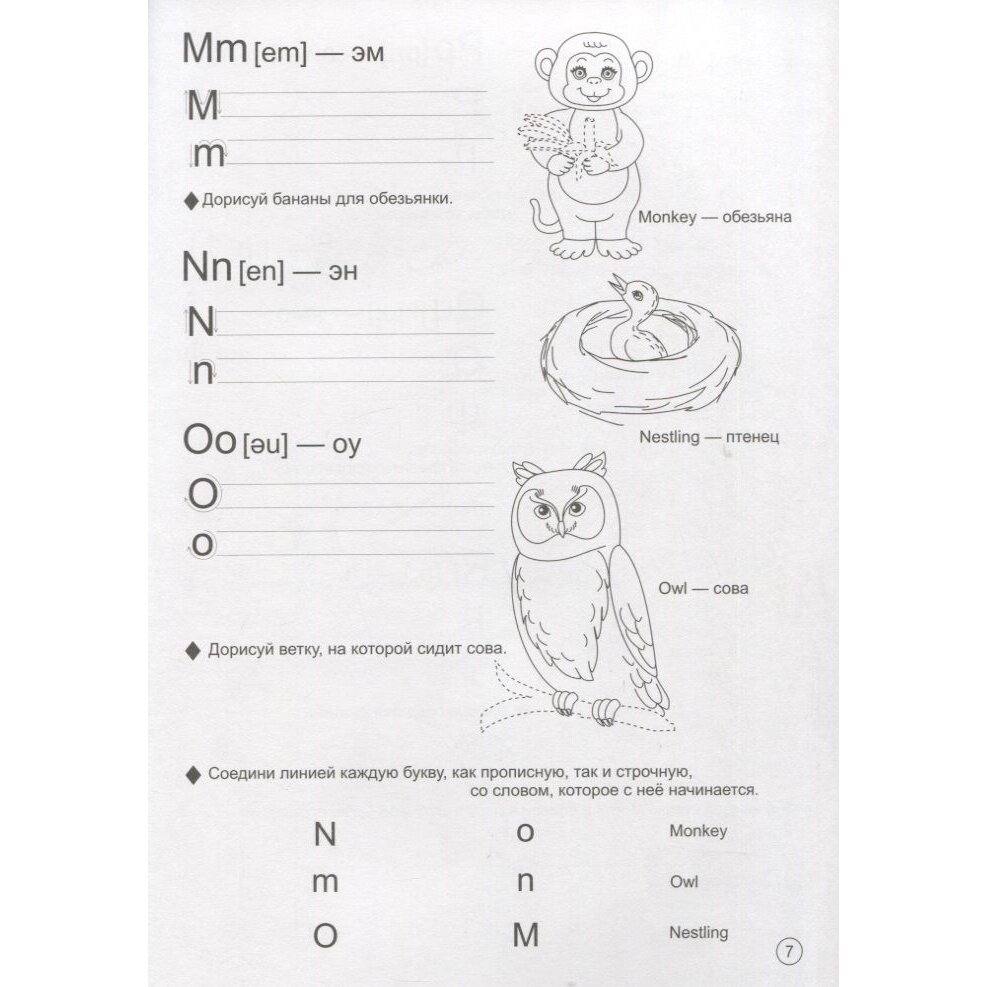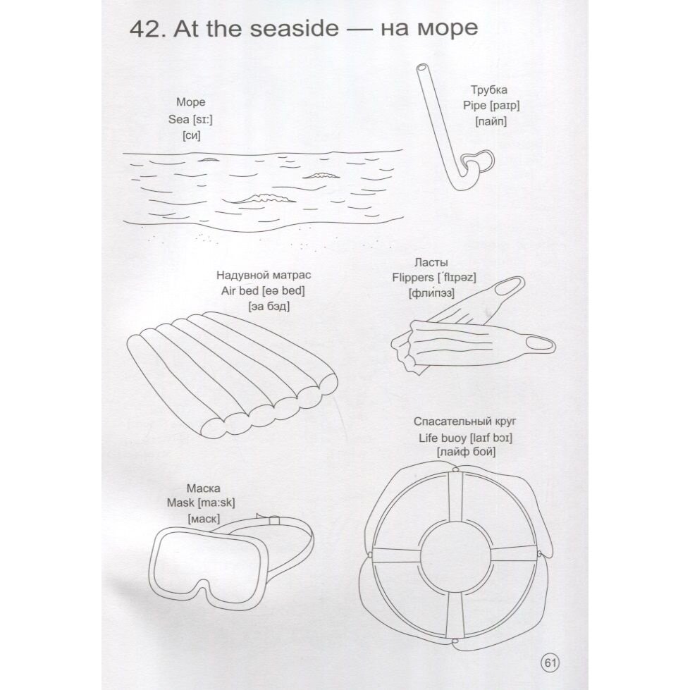Книга- раскраска. Сначала идет алфавит ( буква и изображения слов, которые начинаются на эту букву), далее все разбито по темам. Одна страничка - одна тема. Цифры, цвета, животные, геометрические фигуры, одежда и т.д. Текст на русском, на английском, транскрипция и написано произношение по- русски, если не знаете правила чтения, детям нравится. Мы занимаемся так. Рассматриваем картинки, проговариваем слова, повторяем отдельные слова и в предложении. А когда раскрашиваем, то слушаем песенку на английском. Детям нравится. Соотношение цена и качество - устраивает.