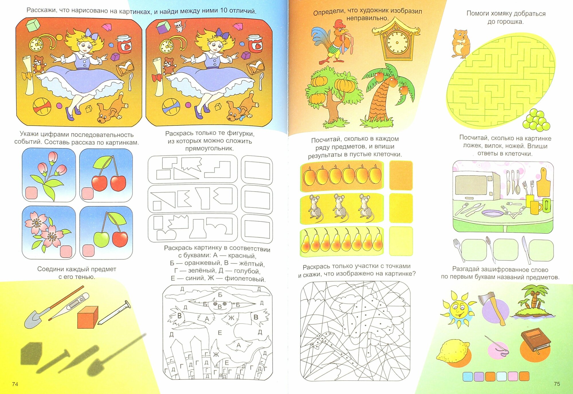 Очень хорошая книжка! В ней огромное количество заданий на сообразительность, логику, счет, внимание. Есть лабиринты, задания перерисовать картинку (что очень полезно для подготовки к школе). Купила эту книгу в обычном книжном магазине и стоила она намного дороже. Мне нужен был сборник разнообразных заданий, чтобы позаниматься с ребенком в отпуске. Листы в книге плотные, можно фломастерами рисовать, не просвечивает. Очень довольна этой книжкой!