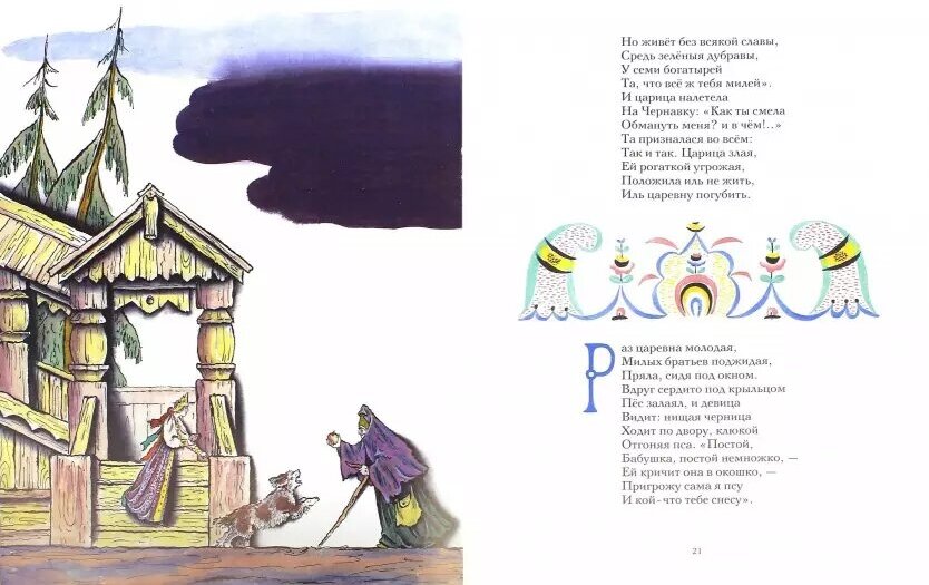 Известно, что Пушкин писал свои сказки, вовсе не рассчитывая на детей. Это потом дети забрали их себе. Конашевич же, как художник истинно детский, своими необыкновенно выразительными, яркими, полными драматизма и вместе с тем оптимистичными иллюстрациями окончательно закрепил эти сказки за детьми.