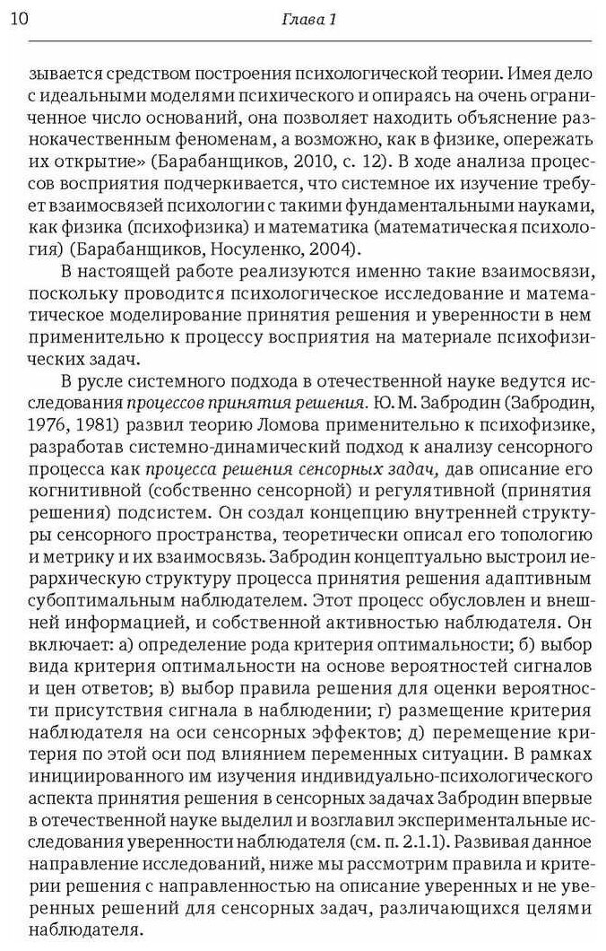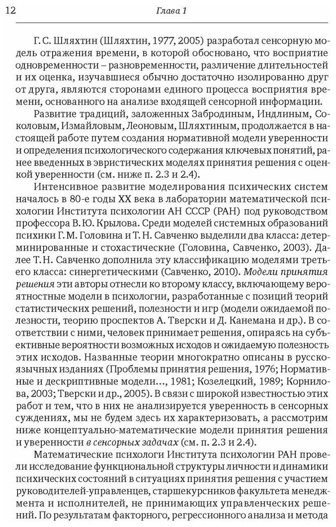 Вниманию читателя предлагаются оригинальная концепция уверенности человека, выполняющего сенсорные задачи в условиях неопределенности, и разработанная на ее основе математическая модель принятия решения. Книга адресована психологам, изучающим феномен уверенности. Она может быть интересна лицам, часто принимающим оперативные решения на основе личного опыта (руководителям, предпринимателям, врачам, политикам, военнослужащим и др.), а также разработчикам технических устройств с сенсорными датчиками и элементами искусственного интеллекта для различения близких по своим характеристикам объектов.