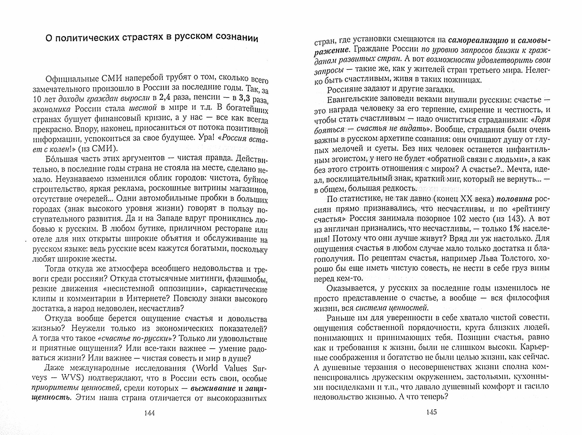 Очень интересная книга в части социологических исследований общественного мнения и анализа текущего положения дел, но в конце книги автор скатывается к тезису, что РПЦ должна стать объединяющим стержнем нации, сразу же за доводами о том, что религиозность не помогает развивать экономику- атеисты вышли из чата.