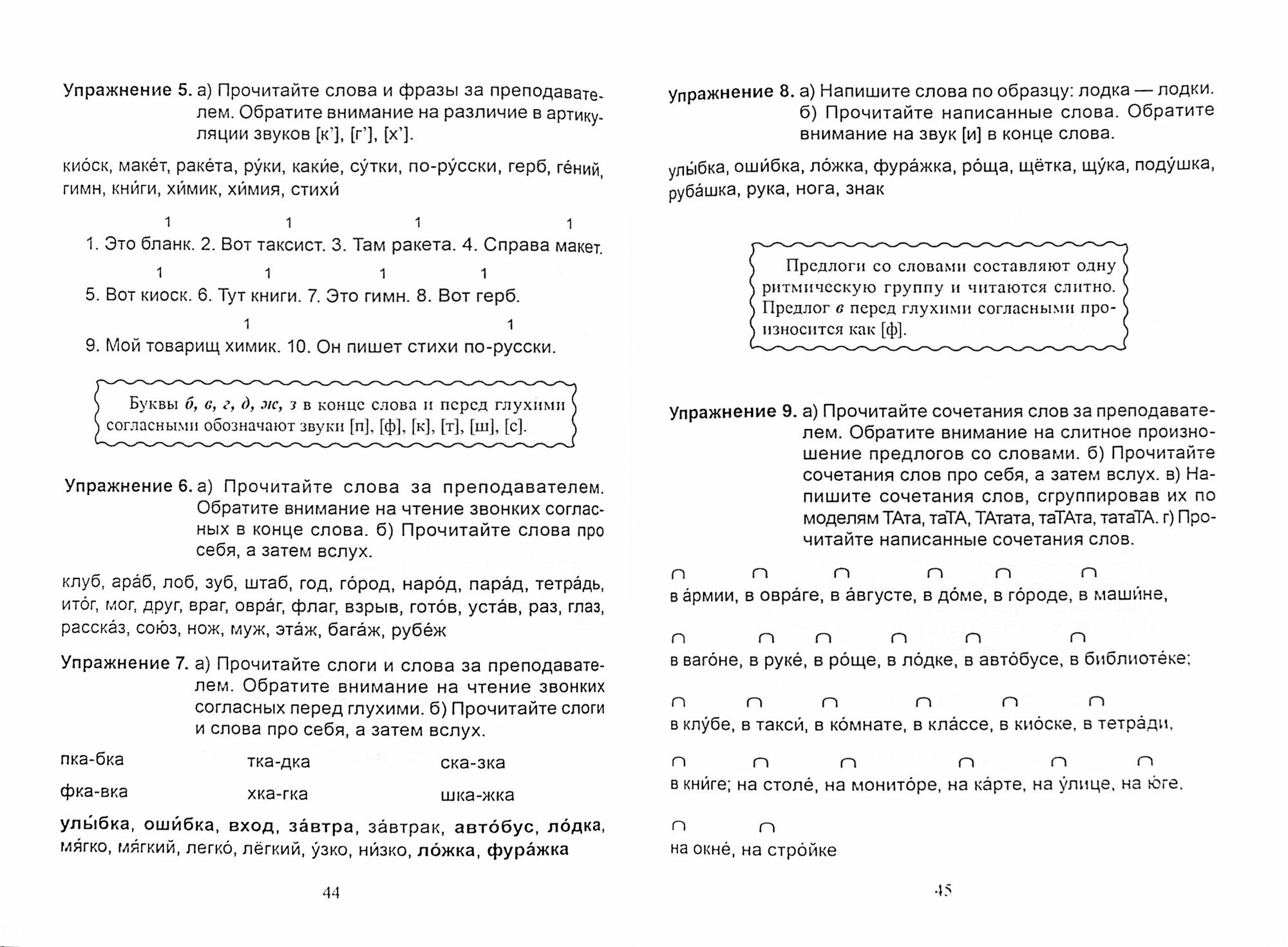 Целью пособия является освоение артикуляционной базы русского языка, развитие фонетического слуха и тем самым создание предпосылок для формирования навыков всех видов речевой деятельности: чтения, говорения, аудирования, письма. Пособие рассчитано на 90 учебных часов. Для иностранных учащихся, впервые приступающих к изучению русского языка под руководством преподавателя.
