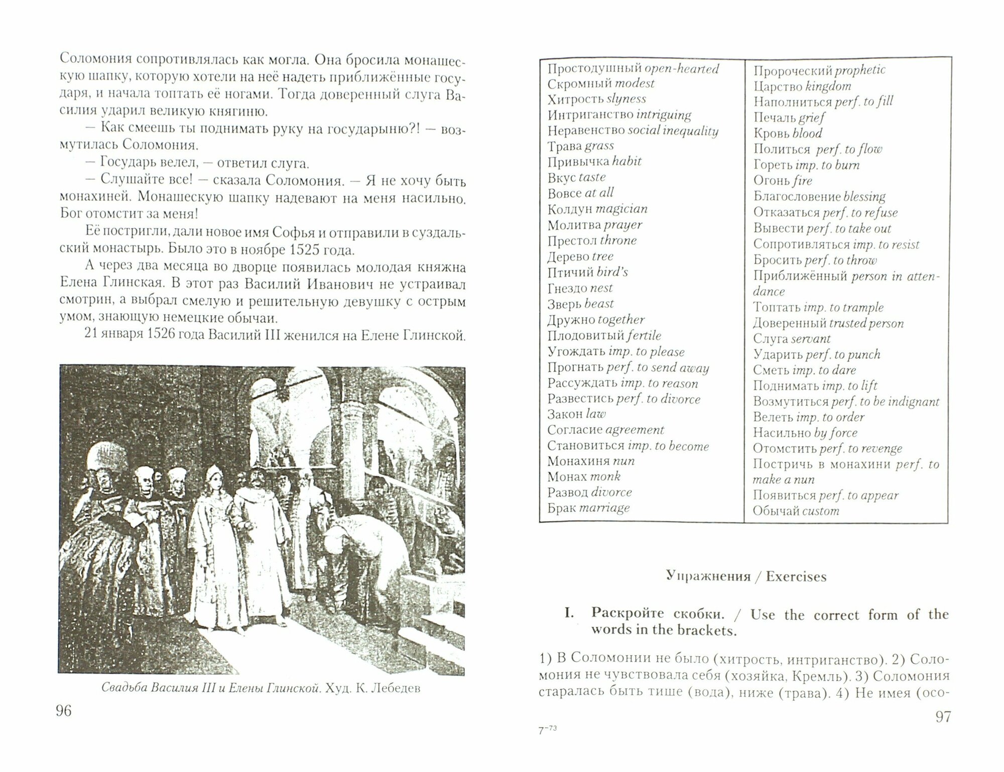 Настоящая книга представляет собой учебное пособие, в котором описывается история Москвы, рассказывается о самых известных исторических личностях: Василии III, Иване Грозном. Тексты адаптированы и сопровождаются большим количеством различных упражнений. После каждого текста имеется русско-английский словник. В книгу включен и иллюстративный материал, который является хорошим подспорьем для лучшего понимания текста.