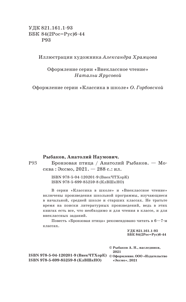 Книга: Бронзовая птица (Рыбаков Анатолий Наумович); ООО "Издательство "Эксмо", 2015