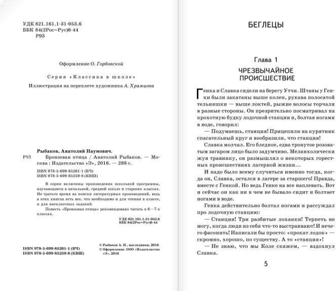 Бронзовая птица — повесть-роман Анатолия Рыбакова 1956 года, «легендарный детский триллер», вторая книга трилогии «Кортик» — «Бронзовая птица» — «Выстрел». Товар по теме -. вся трилогия в одной книге и другие части. Отпечатано качественно на белой бумаге. Предлагаю материал для ознакомления с оформлением и содержанием главы. Кроме того все части экранизированы. Книга без иллюстраций - привожу кадры из фильма и ссылку на него.