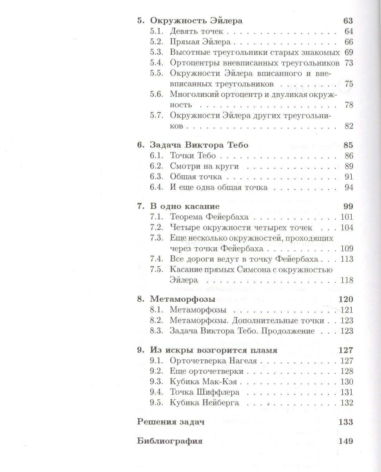 В книге рассматриваются красивые геометрические факты, связанные с окружностью Эйлера, теоремой и точками Фейербаха, а также другие материалы, способствующие развитию творческих способностей школьников. Пособие предназначено в первую очередь школьникам старших классов, учителям и студентам педагогических вузов, а также всем любителям элементарной геометрии.