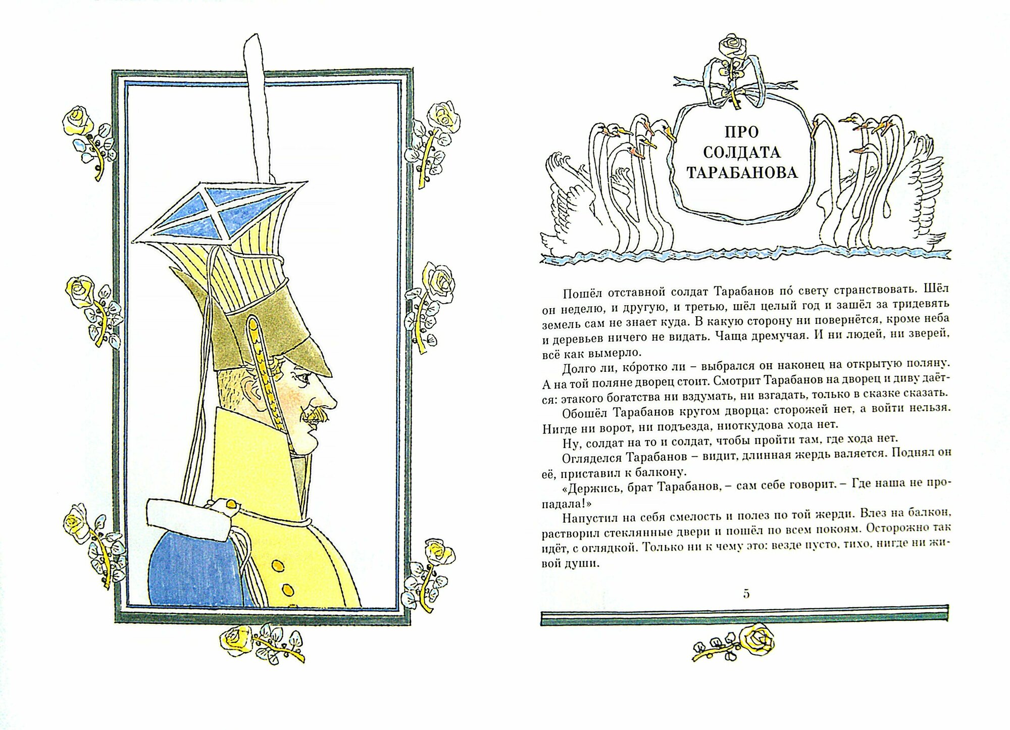 Первая сказка, "Про солдата Тарабанова" очень напоминает по сюжету "Поди туда, не знаю куда": женился отставной солдат ("В сорок лет жизнь только начинается!" - как говаривала героиня известного фильма) на умнице-красавице-рукодельнице, на которую и царь "глаз положил", и пришлось солдату каверзные задания государя выполнять. Успешно, естественно.