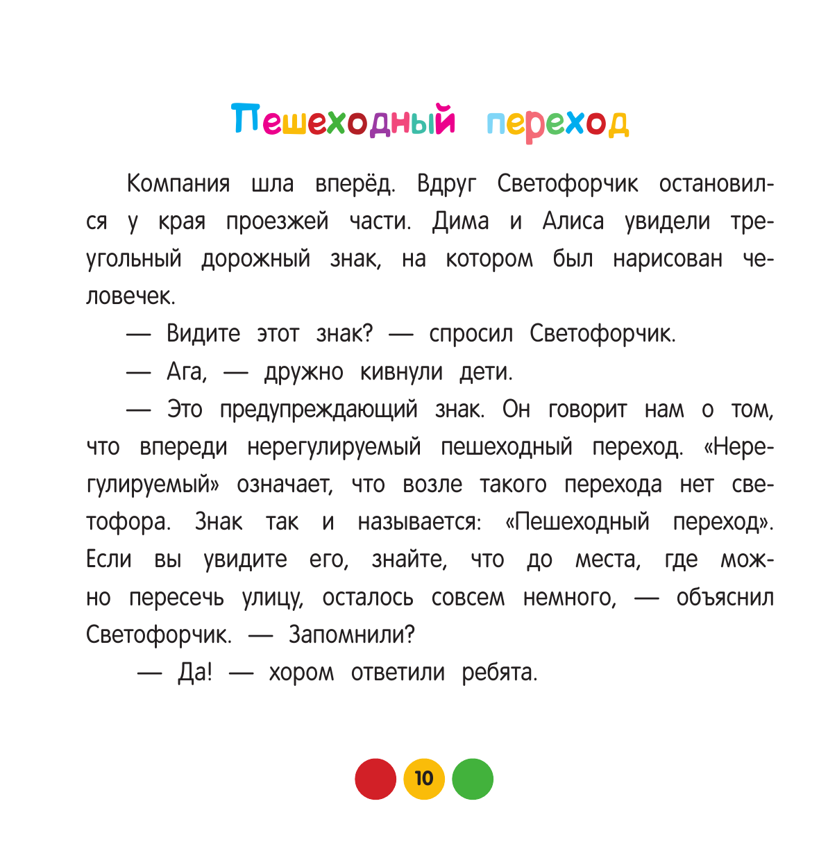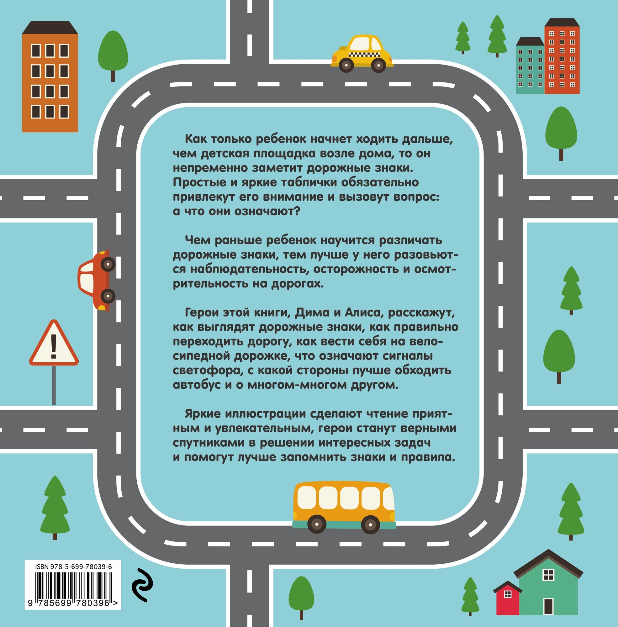 Вместе с героями Димой и Алисой ребенок узнает, как выглядят дорожные знаки, как правильно переходить дорогу, как вести себя на велосипедной дорожке, а также о дорожных работах и многом-многом другом.