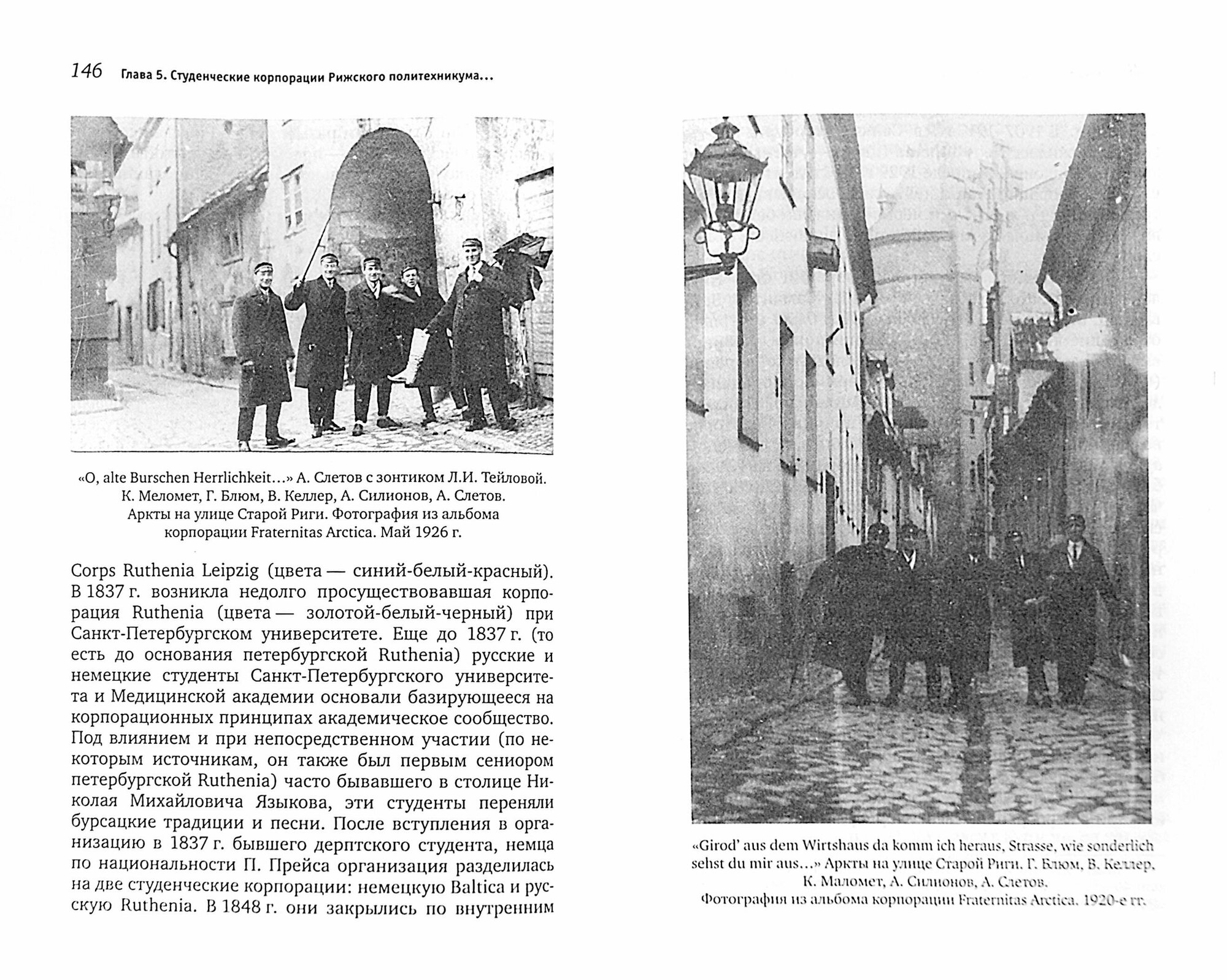 Работа этнолога, доктора исторических наук, ведущего научного сотрудника Института этнологии и антропологии РАН Светланы Рыжаковой посвящена истории, социальному контексту и культурной жизни академических пожизненных объединений - студенческих корпораций Латвии. На основе широкого круга источников (исторических, художественных, личных наблюдений, бесед и интервью) показаны истоки их формирования в балтийском крае, исторический и этнокультурный контексты существования, общественные функции. Рассказывается о внутреннем устройстве повседневной жизни корпораций, о правилах, обычаях и ритуалах. Особенное внимание привлечено к русским студенческим корпорациям Латвии и к биографиям некоторых корпорантов - архитектора Владимира Шервинского, шахматиста Владимира Петрова и его супруги Галины Петровой-Матисс, археолога Татьяны Павеле, врача Ивана Рошонка и других. В книге впервые публикуются уникальные иллюстрации из личных архивов и альбомов корпораций.