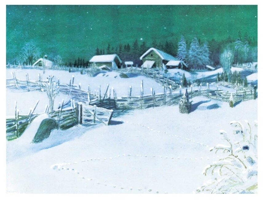 После приобретения могу сказать, что работами художника осталась довольна. Зима, сугробы, сельский пейзаж, "домовой" - всё это в духе наступающего праздника (и особенно актуально в наши отнюдь не снежные зимы - порадовать(ся) прелестями этого времени года хотя бы на картинке).