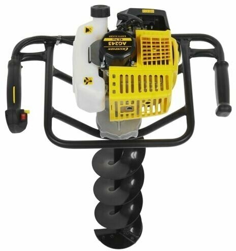 Без мотобура CHAMPION невозможна посадка крупных растений, установка заборов и ограждений и зимняя рыбалка. Благодаря двухтактному бензиновому двигателю мощностью 1,7 л.с. инструмент просверливает отверстия в различных земных поверхностях. Эффективное воздушное охлаждение мотора обеспечивает длительную бесперебойную работу. Вибрации двигателя частично гасятся за счет прорезиненных рукояток. На них так же располагаются элементы управления двигателем.