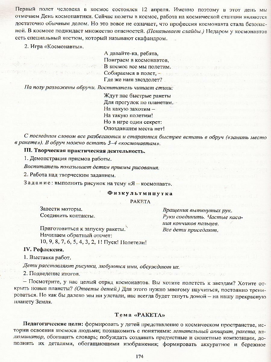 Замечательная методичка как для начинающего воспитателя, так и для уже имеющего опыт работы. Приятная глянцевая обложка, большой формат, книга удобна для использования на работе и дома. В ней собраны полностью составленные по темам комплексные занятия с детьми старшей группы детского сада на весь учебный год, с сентября по май (лето не входит). Каждое занятие - это целый комплекс игр, стихов, песен, загадок, физических упражнений, различных заданий детям. Конспекты занятий включают в себя работу по всем образовательным областям ( формирование элементарных математических понятий, ознакомление с окружающим миром, развитие речи, познание, художественно-эстетическое развитие). Это пособие намного облегчит подготовку воспитателя к занятиям.