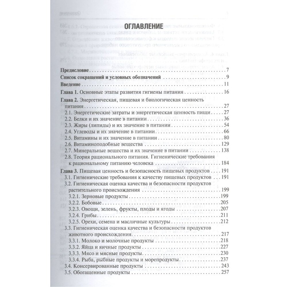 В руководстве изложены гигиенические основы питания человека, научно-практические аспекты теории рационального питания. Отражены современные данные о физиологических потребностях в пищевых веществах и энергии для различных категорий населения, приведены критерии пищевой и биологической ценности и безопасности основных групп продуктов, в том числе новых источников пищи. Рассмотрена в расширенном аспекте проблема алиментарно-зависимых заболеваний и алиментарной адаптации человека в условиях действия неблагоприятных факторов среды обитания. Описаны подходы к обеспечению качества пищевой продукции при ее производстве и реализации.