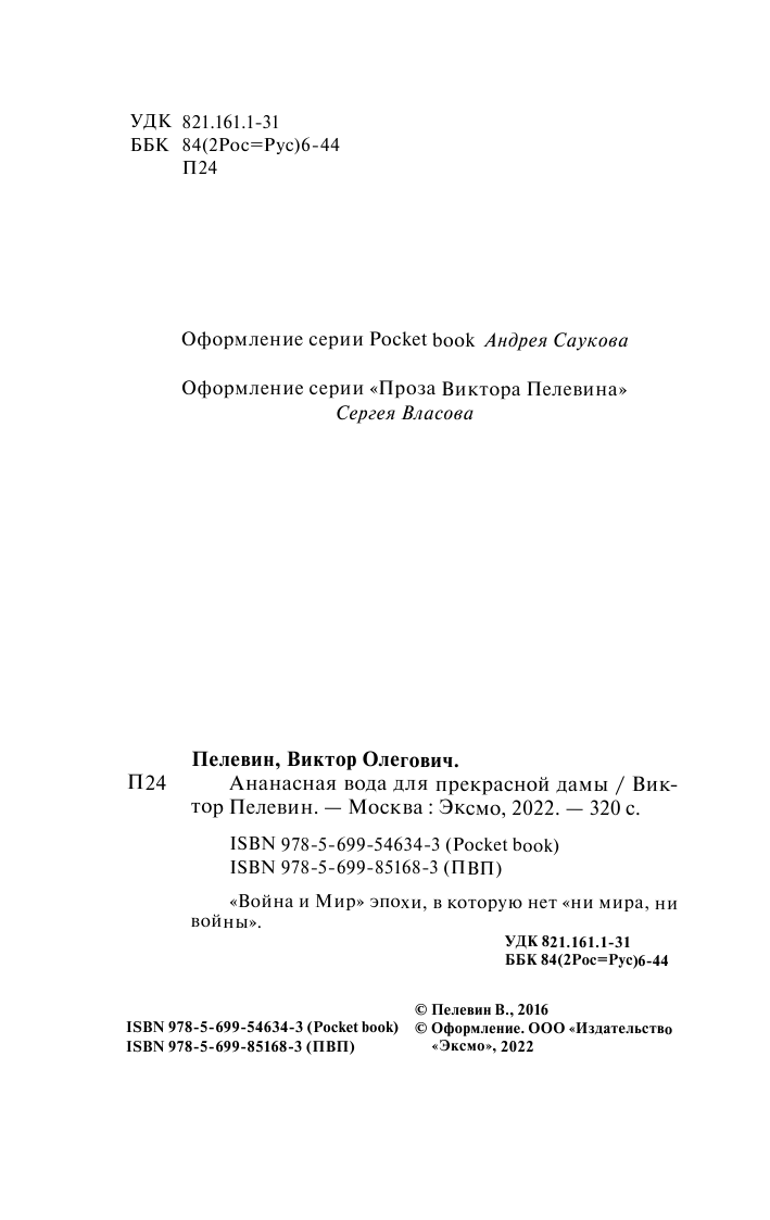 Ананасная вода для Прекрасной Дамы (Пелевин Виктор Олегович); Эксмо, 2022