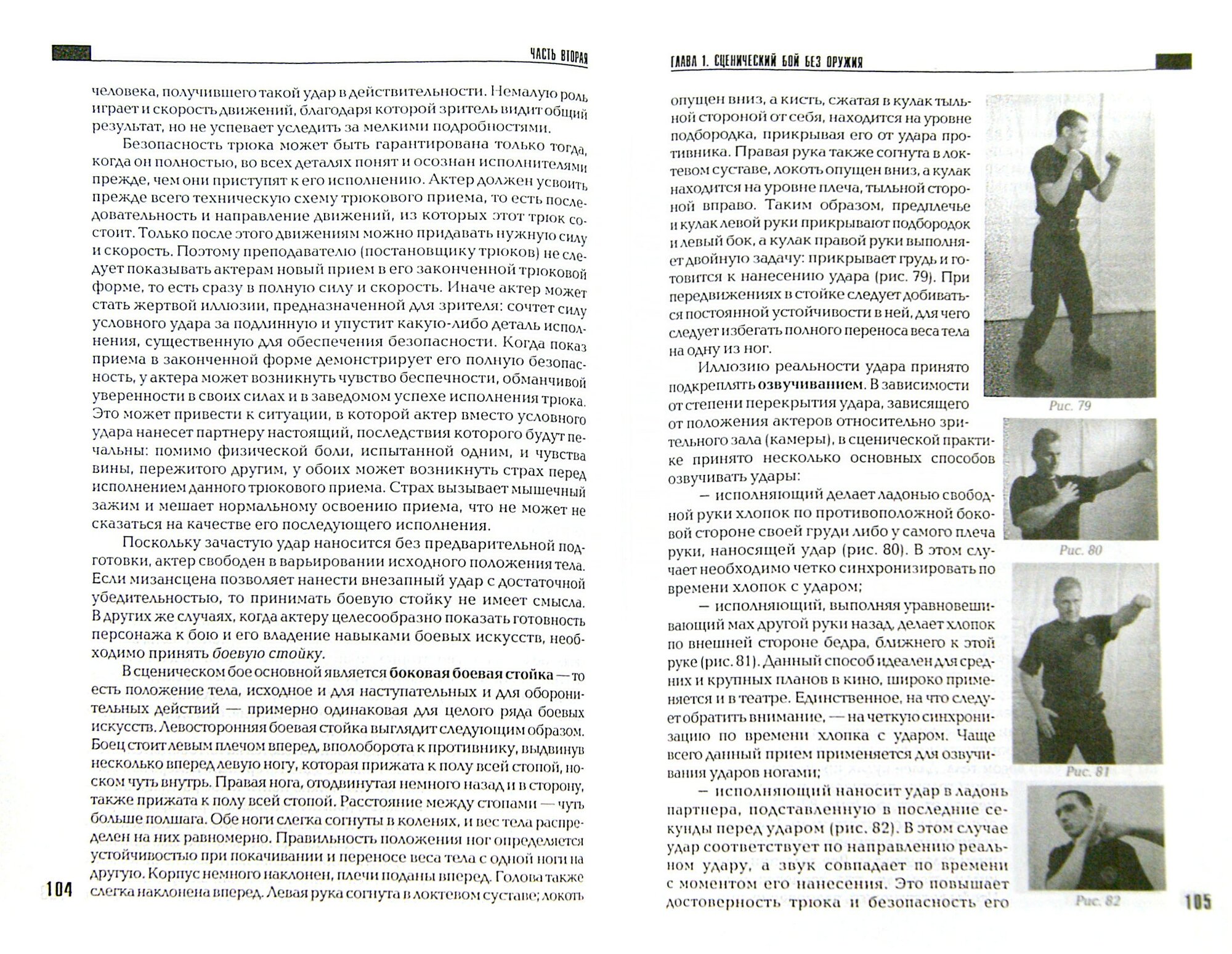 Автор подробно излагает историю создания и развития боевых искусств, дает точное описание холодного и огнестрельного оружия разных времен, строевых и боевых приемов с оружием, описывает способы создания на сцене и на съемочной площадке достоверной имитации боевых столкновений.