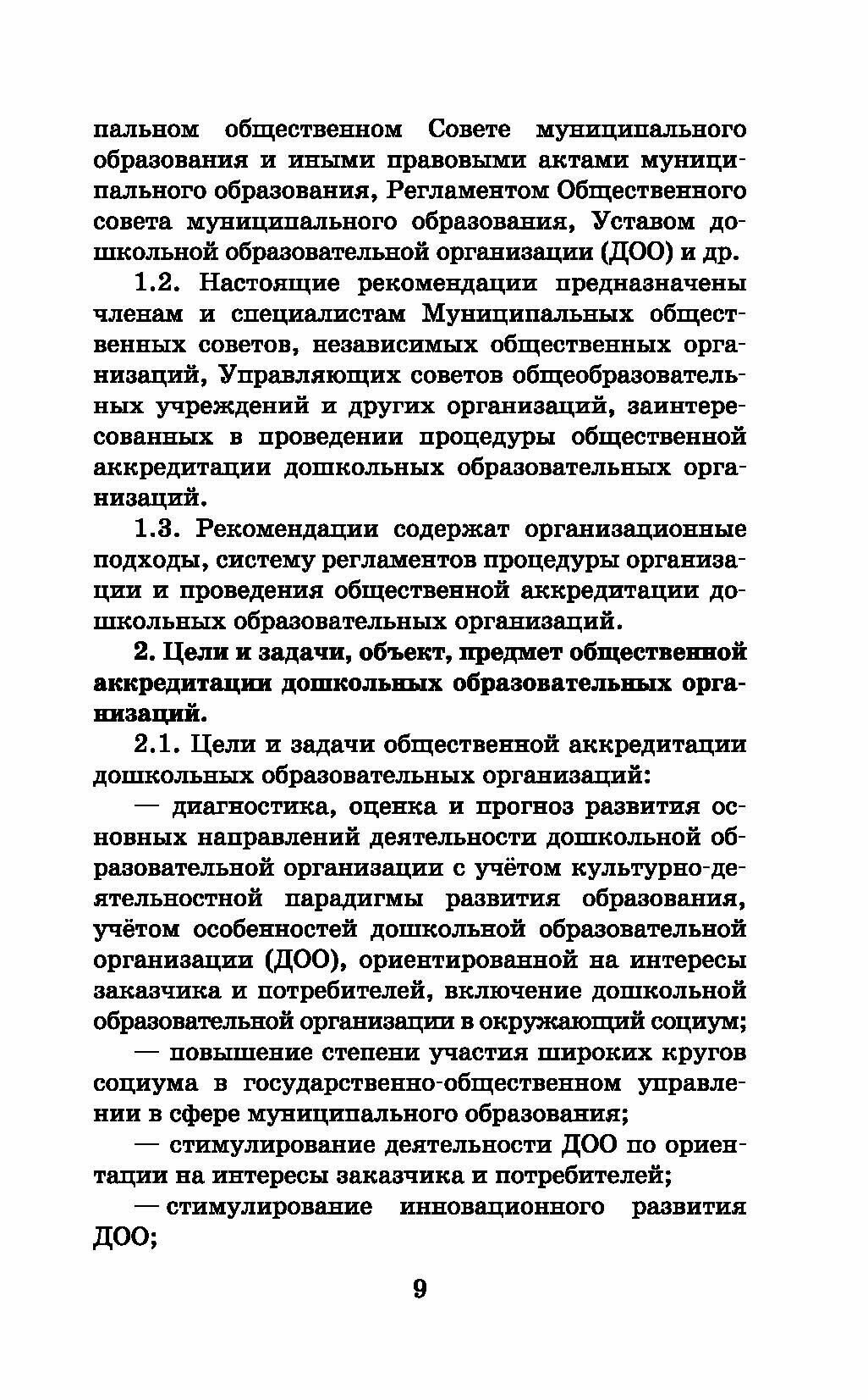 Рекомендации раскрывают нормативно-правовые, методические и содержательные основы организации и проведения процедуры общественной аккредитации дошкольных образовательных организаций. Материалы содержат порядок проведения процедуры, основные направления деятельности ДОО, их параметры, требования к ним и критерии оценки.
