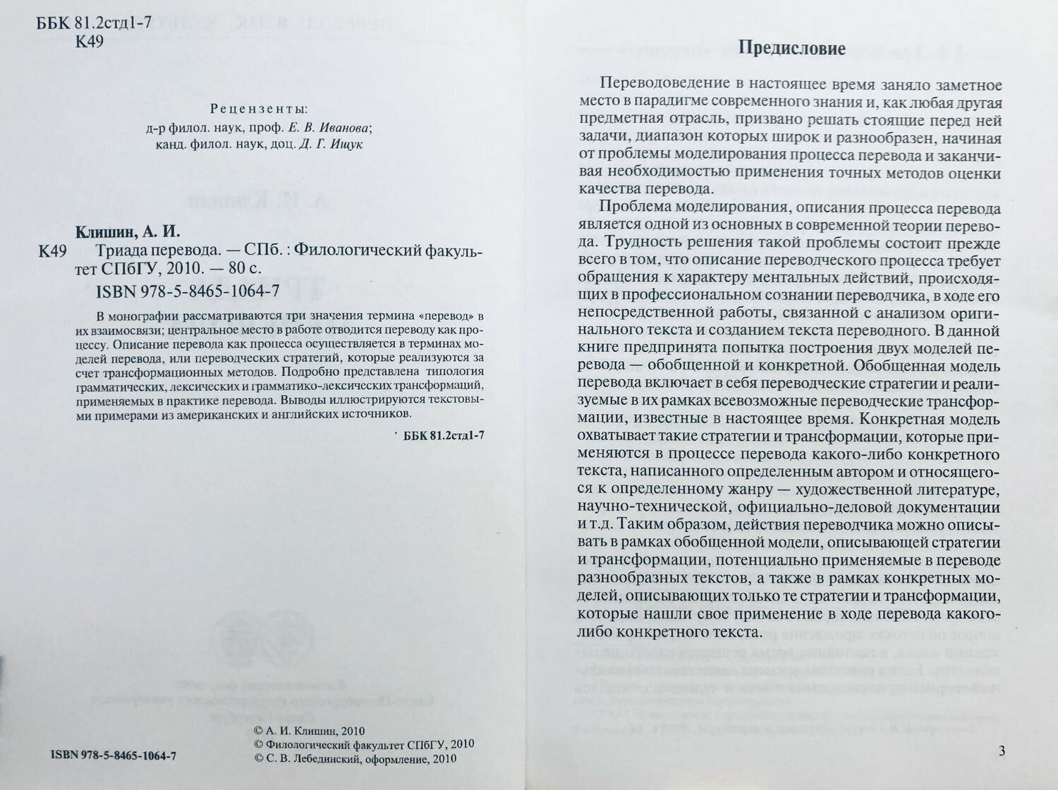 Книга: Триада перевода (Клишин Александр Иванович); Филологический факультет СПбГУ, 2010