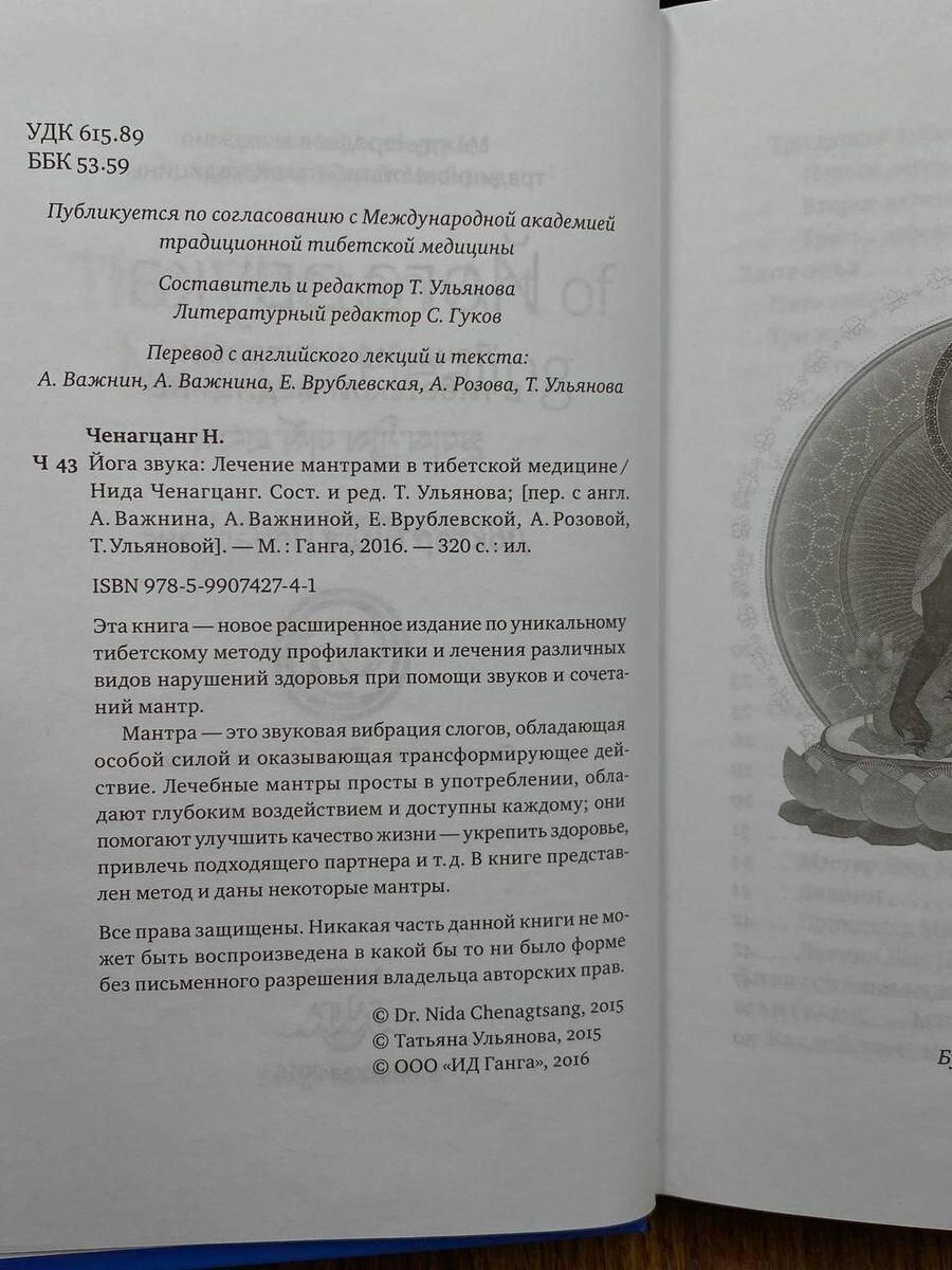 это уникальное издание: в нем удачно сочетаются теоретические и практические основы лечения мантрами, рассматриваемые в контексте традиционной тибетской медицины. Иллюстрации черно-белые, но это нисколько не умаляет их достоинства. Этот труд будет интересен тем, кто интересуется различными традиционными восточными учениями (уровень новичок и выше).