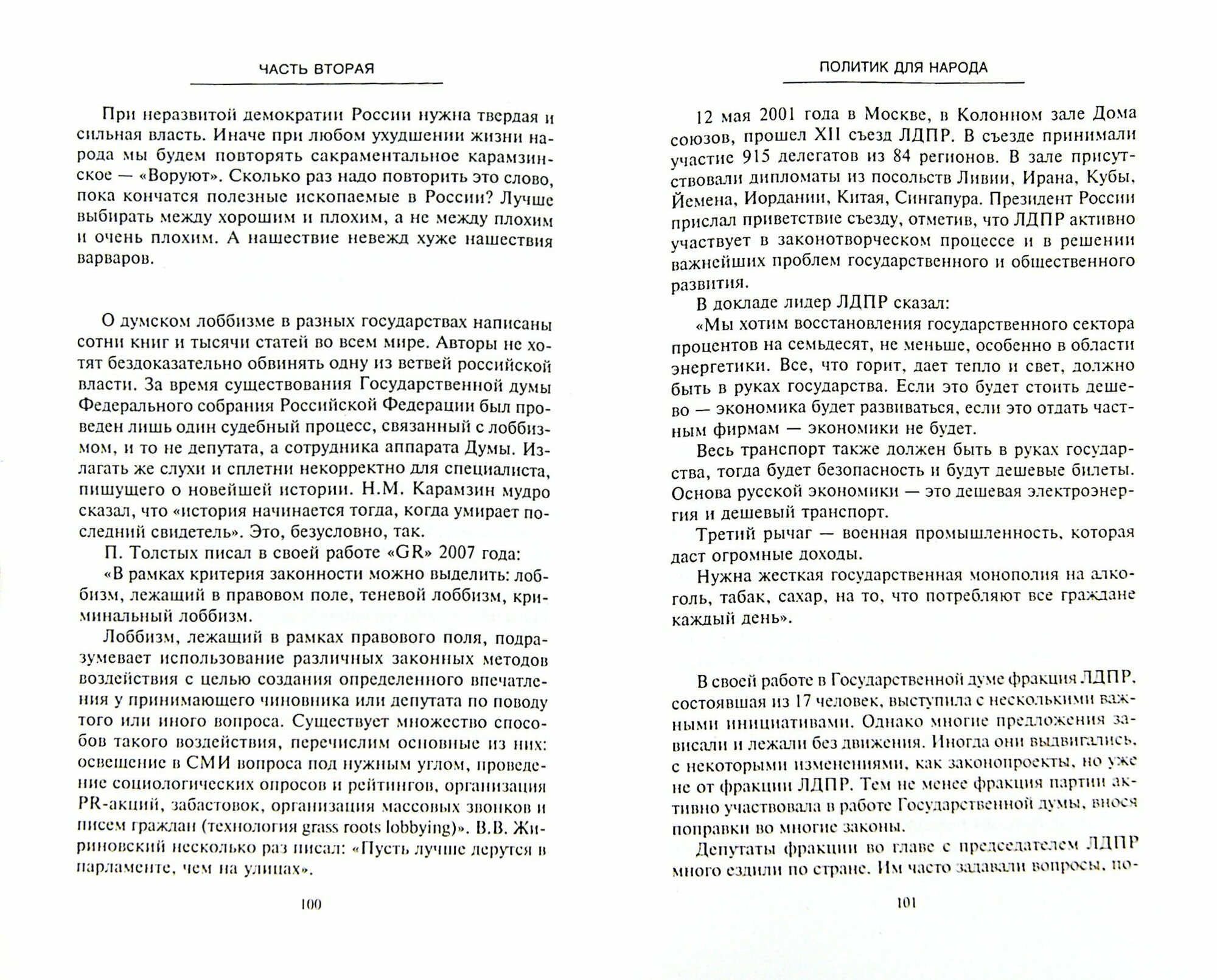 Книга написана глубоко захватывающе, с невероятным интересом. Сперва авторы книги говорят нам о жизни Жириновского, а потом уже приступают к изучению его идеологии. Владимир Вольфович всегда был моим политиком, и теперь я ещё и более в том убедился, что он неистовый Жириновский, а не просто политик, блуждающий по Госдуме просто так.