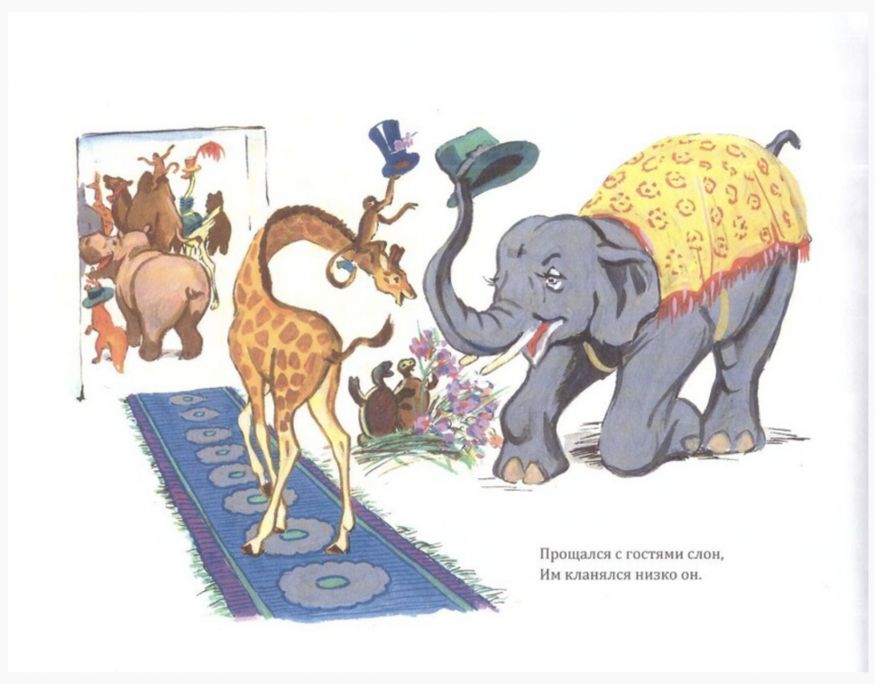 "В зоопарке радостное событие - родился слонёнок! Все-все звери собрались его поприветствовать, принесли подарки и устроили настоящий праздник. Бегемот спел песенку, а жираф вместе со слонихой пустились в пляс.