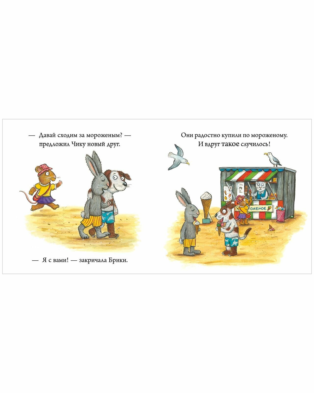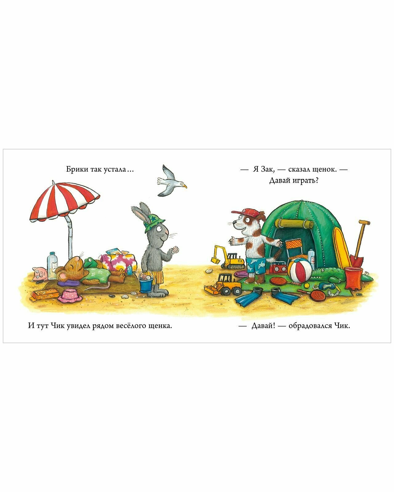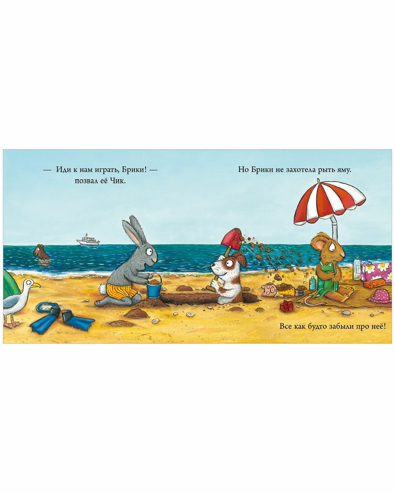 Очень добрая история о том, как важно в любой ситуации оставаться верным другом. Чик и Брики пошли на море купаться, загорать и лепить из песка куличики. Они расстелили полотенца, достали игрушки и бутылки с водой. Они набрали ведёрко ракушек. И выкопали ямку в песке. Брики так устала...И тут Чик увидел рядом весёлого щенка. Когда у Чика появился новый приятель, Брики показалось, что про неё совсем забыли. Бедная Брики! Чтение новой книги станет веселым приключением для детей в возрасте от 3 лет. Вы можете читать ее вместе, или предложить ребенку почитать самому – веселые картинки и простой слог книги подойдут для первого чтения как нельзя лучше.