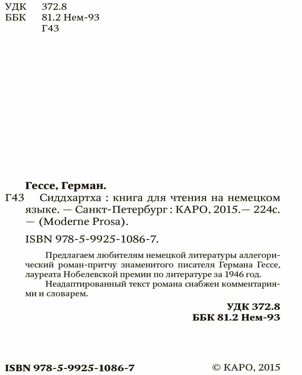 Сервис сравнения цен СкидкаГИД предлагает сравнить цены на товар «Книга: Siddhartha / Сиддхартха. Книга для чтения на немецком языке (Герман Гессе); КАРО, 2015»