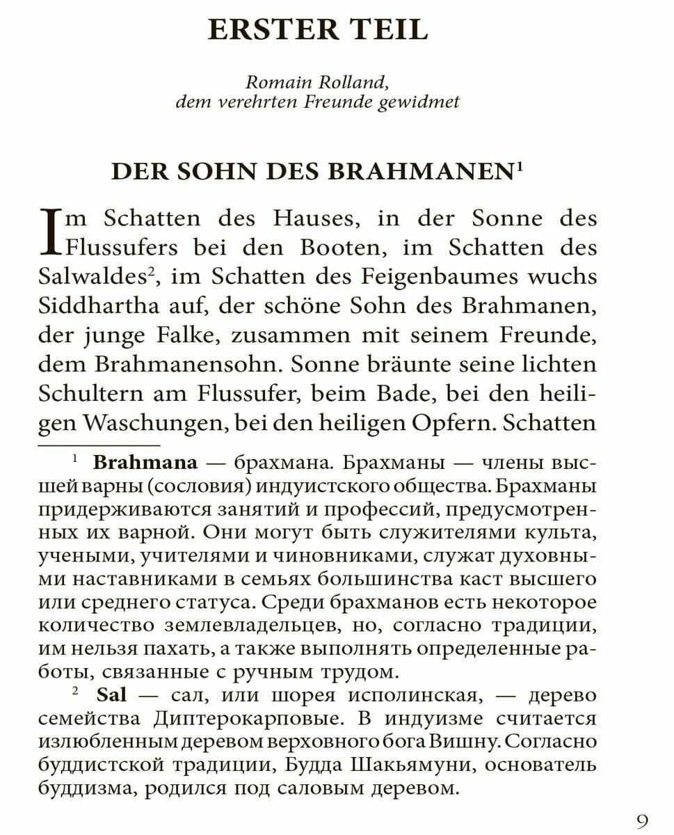 Любите ли вы Гессе, как люблю его я? Герман Гессе один из выдающихся немецкий писателей прошлого столетия. Его произведения наполнены глубокими смыслами. Сидхартха относится (для меня) к одному из самых ярких произведений его творчества. И тем интереснее наконец-то прочитать этот отчасти философский труд на языке оригинала, что бы глубже прочувствовать то, что хотел сказать сам Герман Гессе. Книга в мягком переплёте, карманного формата. В конце книги есть небольшой словарик.