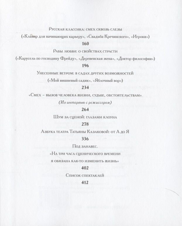 Книга Ольги Скорочкиной, лауреата премии имени А. Кугеля как лучшего театрального критика года, - летопись постановок известного режиссера Татьяны Казаковой. Последние двадцать лет Т. Казакова возглавляет Академический театр Комедии им. Н. П. Акимова, так что во многом книга эта - и летопись театра, хотя режиссер ставила свои спектакли и на других сценах: в Театре на Фонтанке, в "Балтийском доме", в театре имени Ленсовета. Русская и зарубежная классика, современная отечественная и мировая драматургия - весь букет художественных свершений Татьяны Казаковой нашел здесь свое отражение. Книга включает в себя разделы, посвященные критическим разборам спектаклей, а также разделы, рассказывающие об актерах и театральных художниках, работавших в разные годы с Казаковой.