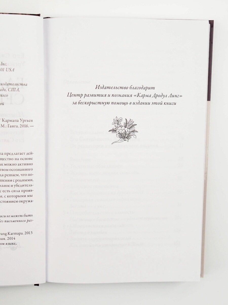 Всем, кто готов принять этот вызов, Кармапа предлагает действенный способ построить глобальное общество на основе сострадания. В этой книге он показывает, как можно активно участвовать в общественной жизни посредством осознанного выбора, который мы делаем ежедневно, когда решаем, что покупать, чем питаться и как выстраивать отношения с родными, друзьями, коллегами на работе. Его оригинальное и убедительное учение свидетельствует о том, что в нас есть сила проявлять доброту, несмотря на многие проблемы, с которыми мы сталкиваемся как существа, озабоченные состоянием окружающей среды и социума.