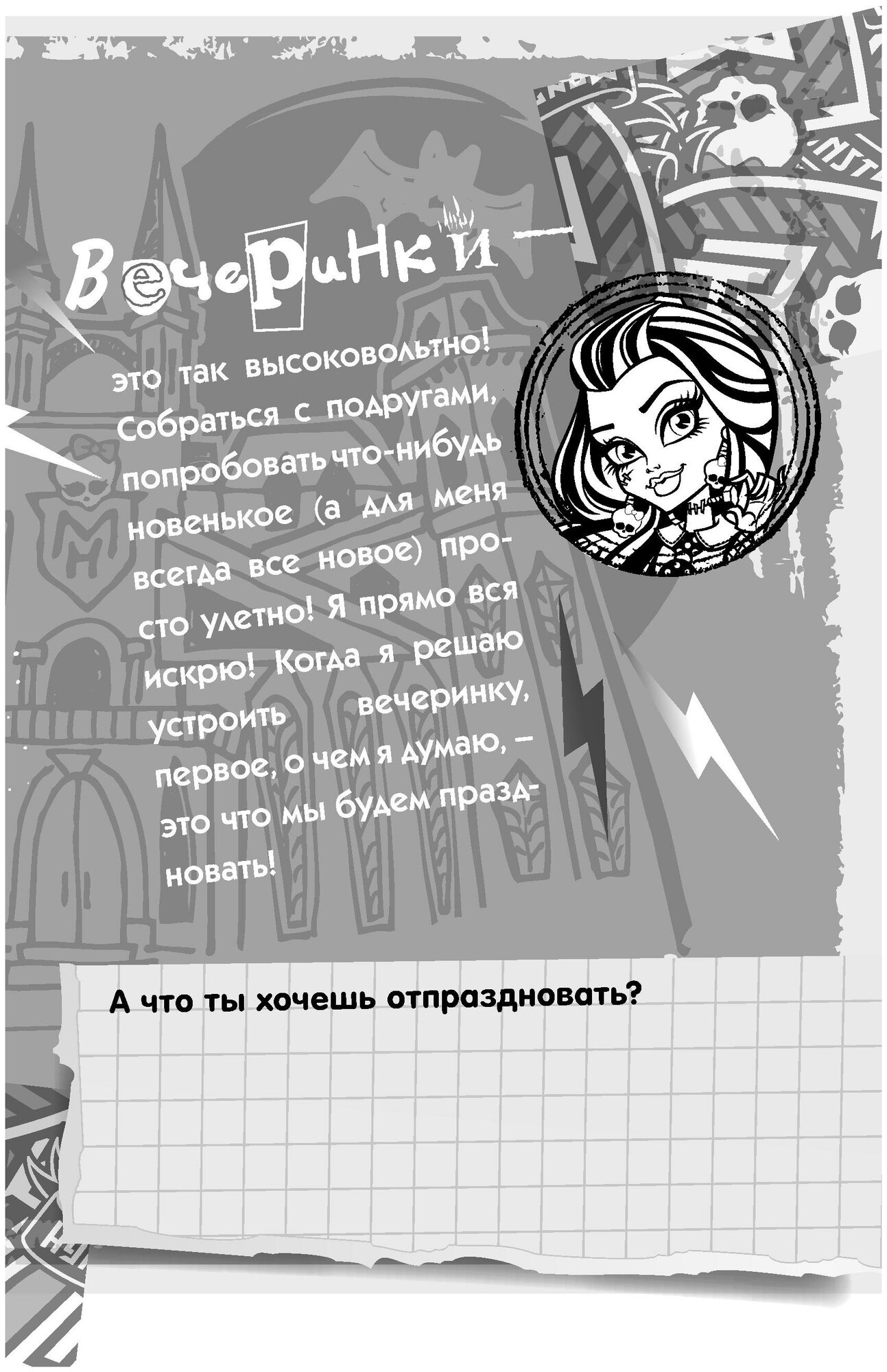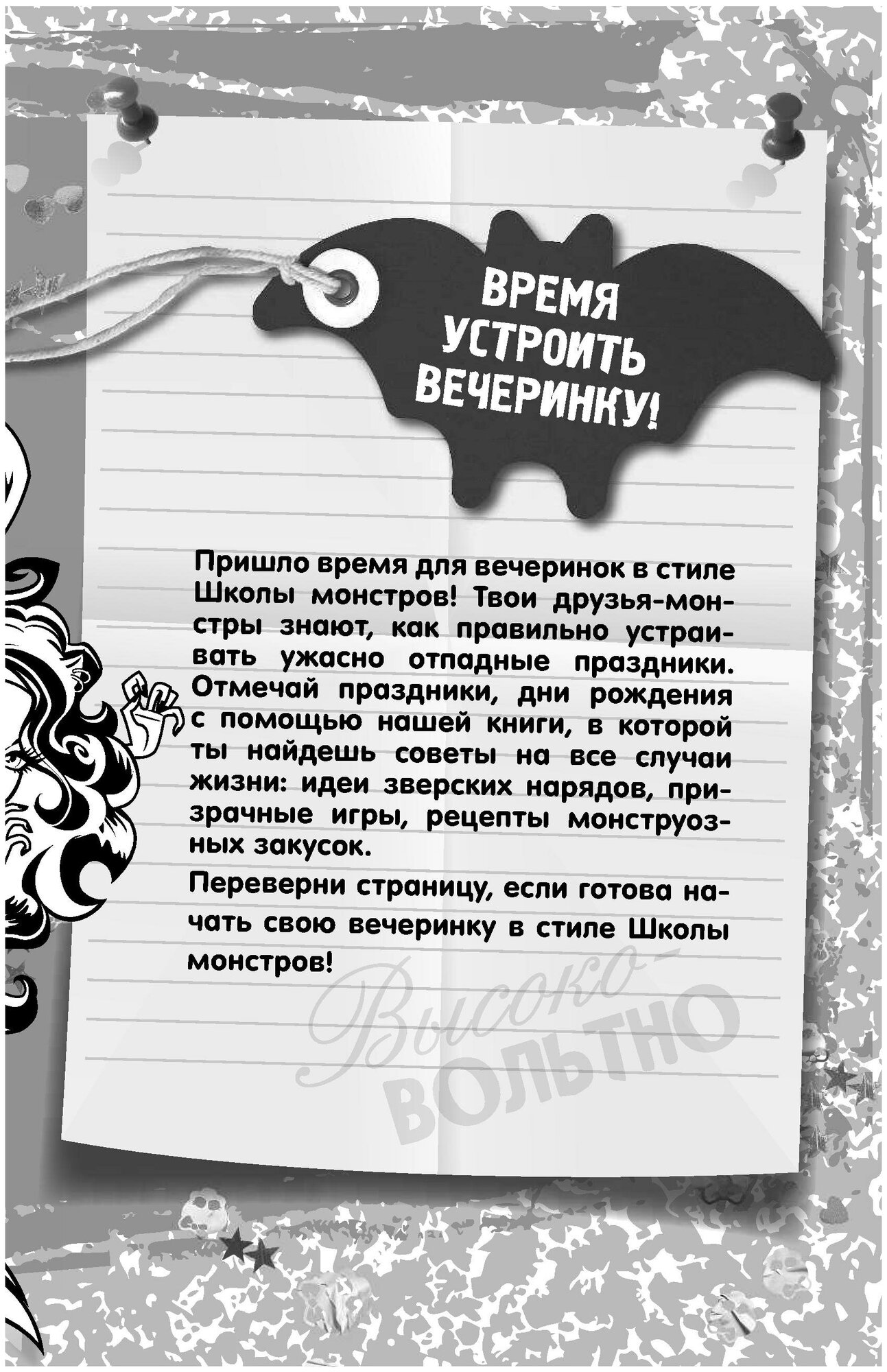 Веселись вместе с любимыми монстрами! Устраивай вечеринки, чаепития, следуя советам Дракулауры, Фрэнки Штейн, Рошель Гойл, Гулии Йелпс, наряжайся не хуже, чем Клео де Нил и Торалей Страйп. Украшай свой дом в стиле Скелиты Калаверас и Венеры МакФлайтрап. Пиши приглашения на праздники вместе с Лагуной Блю и Робеккой Стим. Проходи призрачные тесты с помощью Спектры Вондергейст. Вдохновляйся идеями игр и конкурсов для вечеров с друзьями. Проведи по-настоящему незабываемое время вместе с Monster High!