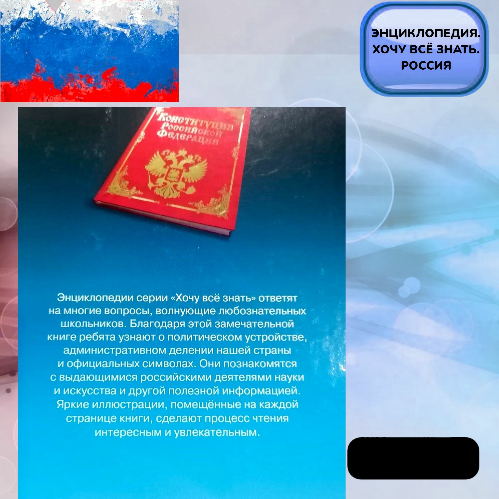 Энциклопедии серии "Хочу всё знать" ответят на многие вопросы, волнующие любознательных школьников. Благодаря этой замечательной книге ребята узнают о политическом устройстве, административном делении нашей страны и официальных символах. Они познакомятся с выдающимися российскими деятелями науки и искусства и другой полезной информацией.