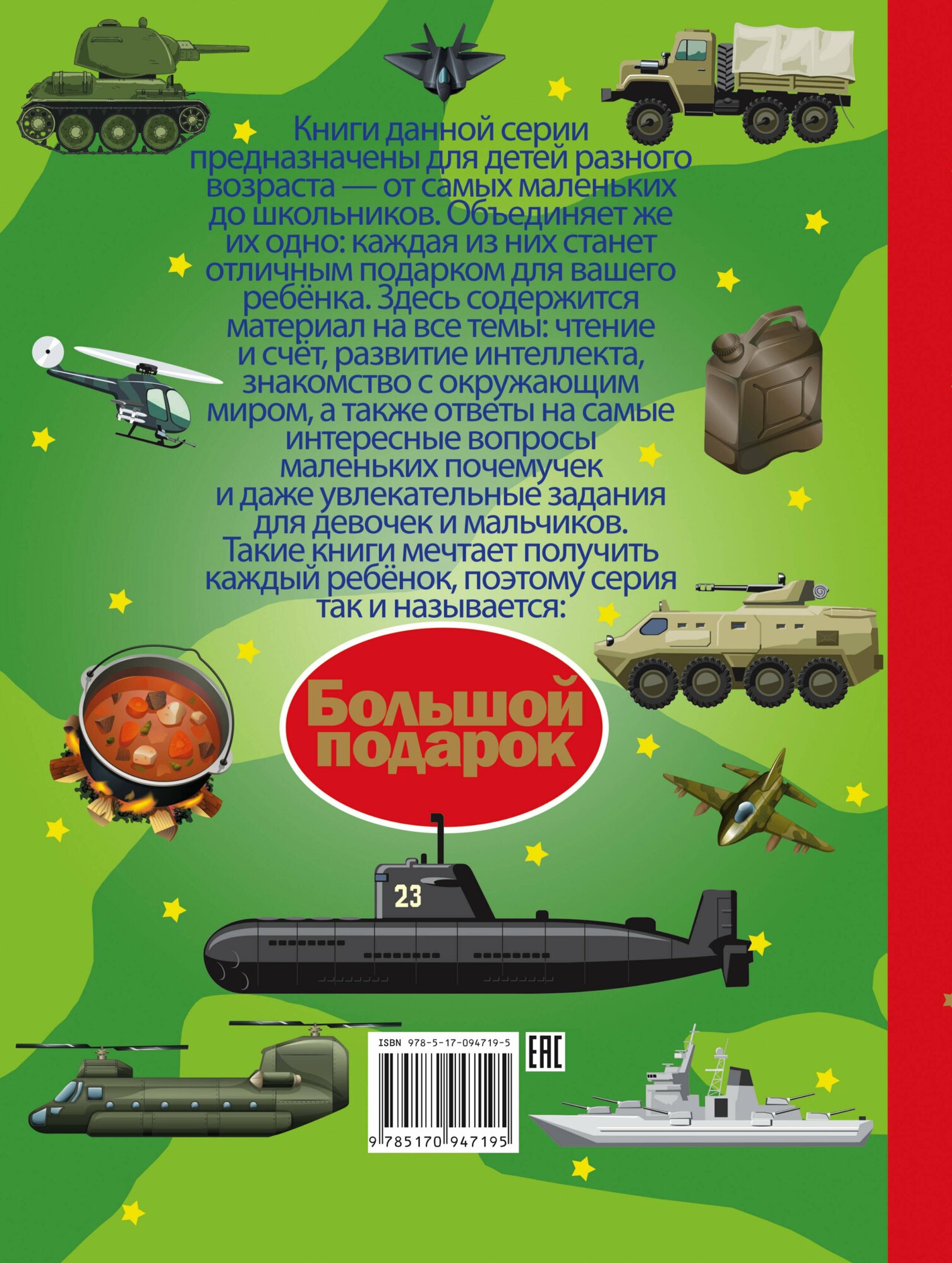 «Большой подарок будущим командирам» – книга, которая станет отличным сюрпризом для всех ребят, мечтающих в как можно больше узнать о военной службе или интересующихся мировой историей и легендарной техникой. В книге представлены боевые самолеты и корабли разного типа различных эпох, автомобили-«бойцы», ряд танков Второй мировой войны. Листая страницу за страницей, подрастающие командиры перенесутся в прошлое и благодаря реалистичным иллюстрациям поближе познакомятся с военным искусством, начиная с древних времен до конца XX века, подробнее узнают о великих битвах и сражениях, об уникальном оружии. Прочитав книгу от начала до конца, у маленьких историков сложится полное представление о военных действиях и героических подвигах.