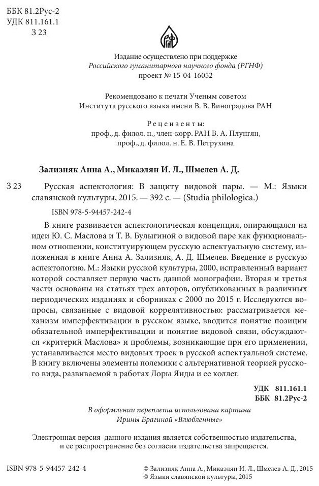 Русская аспектология. В защиту видовой пары (А. Д. Шмелёв); Языки Славянской Культуры, 2015