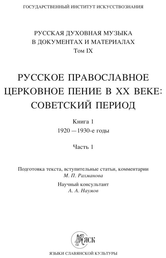 Русская духовная музыка в документах и материалах. Том IX. Книга 1. Часть 1 (Группа авторов); Языки Славянской Культуры, 2015