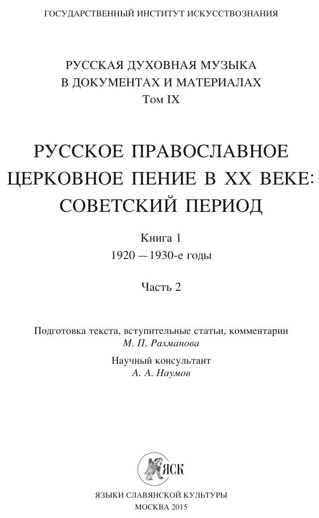 Русская духовная музыка в документах и материалах. Том IX. Книга 1. Часть 2 (Группа авторов); Языки Славянской Культуры, 2015