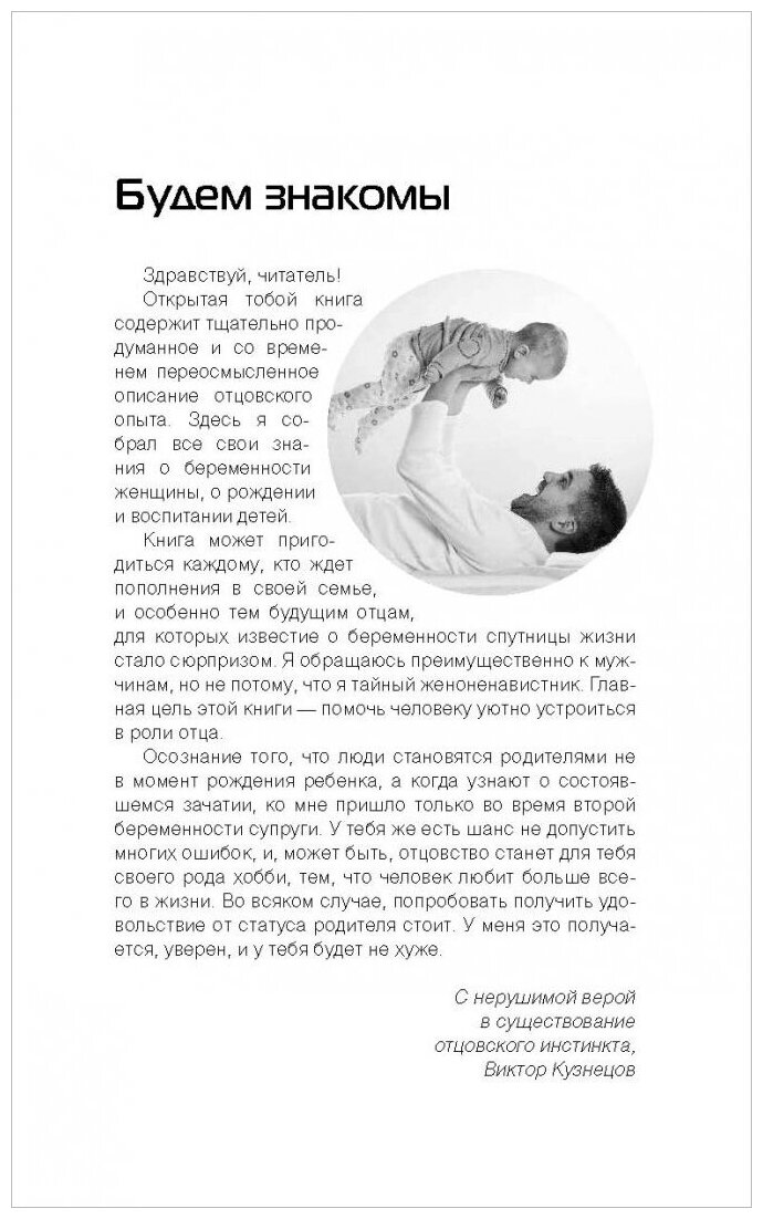 Книга написана мужчиной и для мужчин с заметной долей юмора. Все возможные проблемы, с которыми может столкнуться отец, представляются решаемыми и описываются емко и по делу.