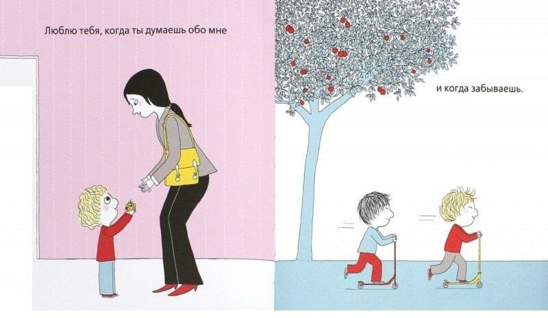 А иллюстрации? Они великолепны и дополняют текст не только через прямое понимание понимания причин "я люблю тебя", но и через метафорическое. Так, что пониманию метафоры с помощью этой книжки можно подсознательно учить ребёнка с пелёнок.