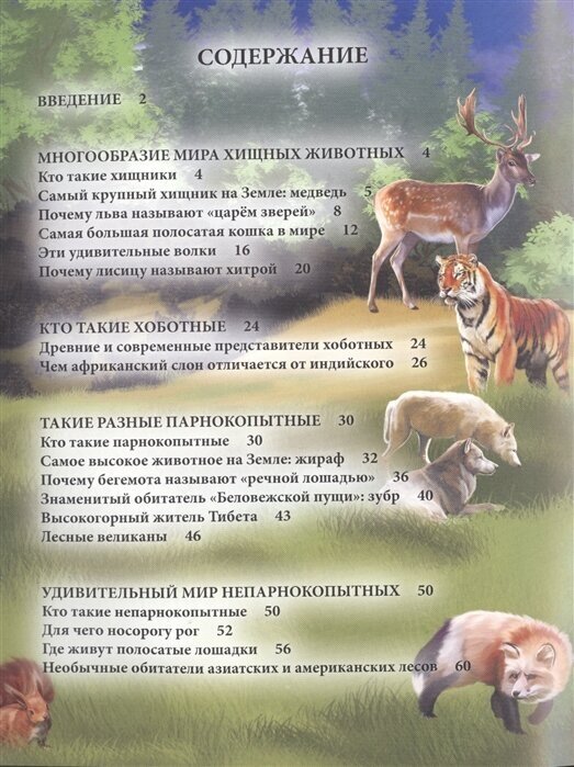 1. Многообразие мира хищных животных - кто такие хищники, самый крупный хищник на Земле: медведь, почему льва называют "царем зверей", самая большая полосатая кошка в мире, эти удивительные волки, почему лисицу называют хитрой